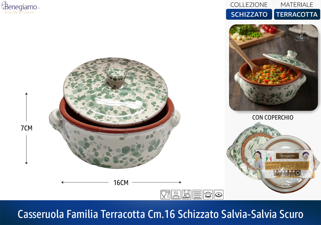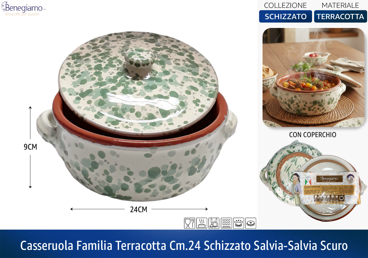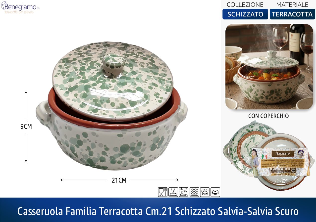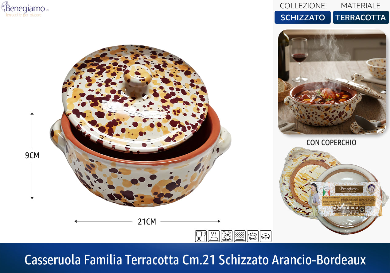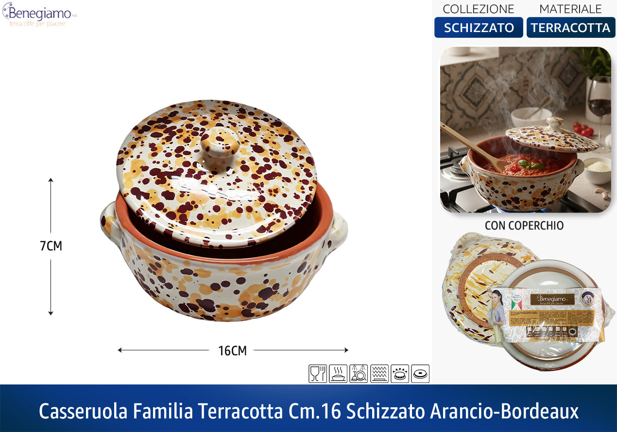 Casseruola in Terracotta con Coperchio Made in Italy - Linea Familia per Cucina Sana - Adatta a Forno e Gas