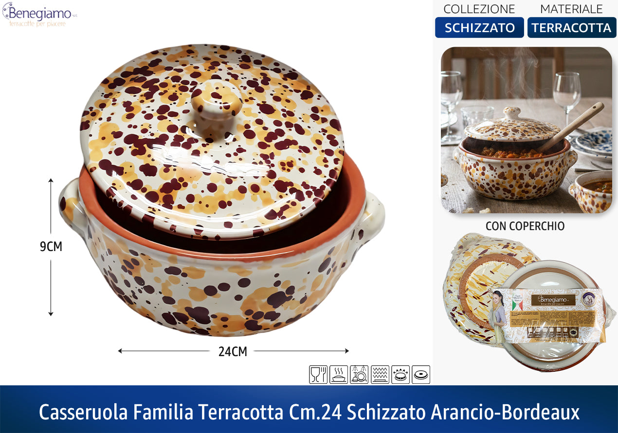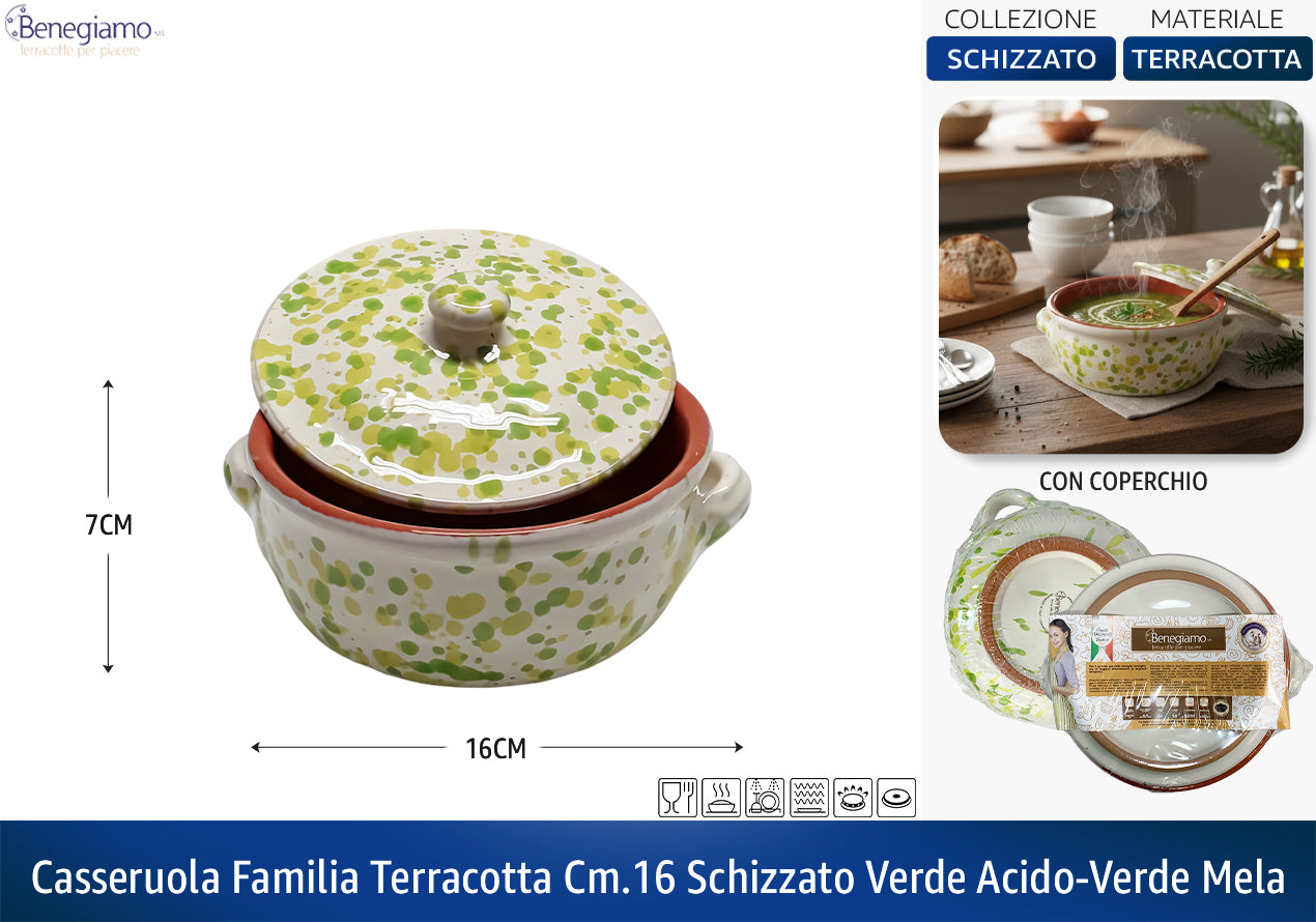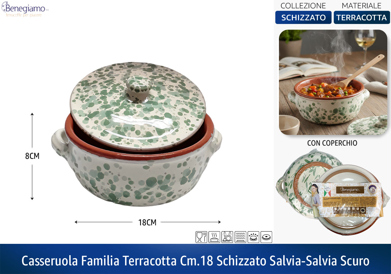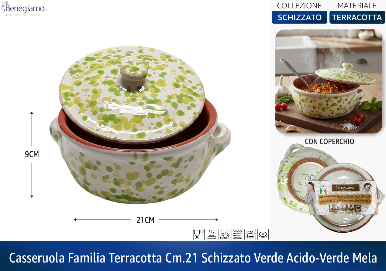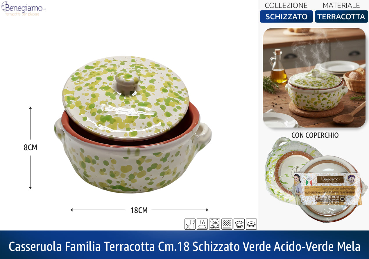 Casseruola in Terracotta con Coperchio Made in Italy - Linea Familia per Cucina Sana - Adatta a Forno e Gas