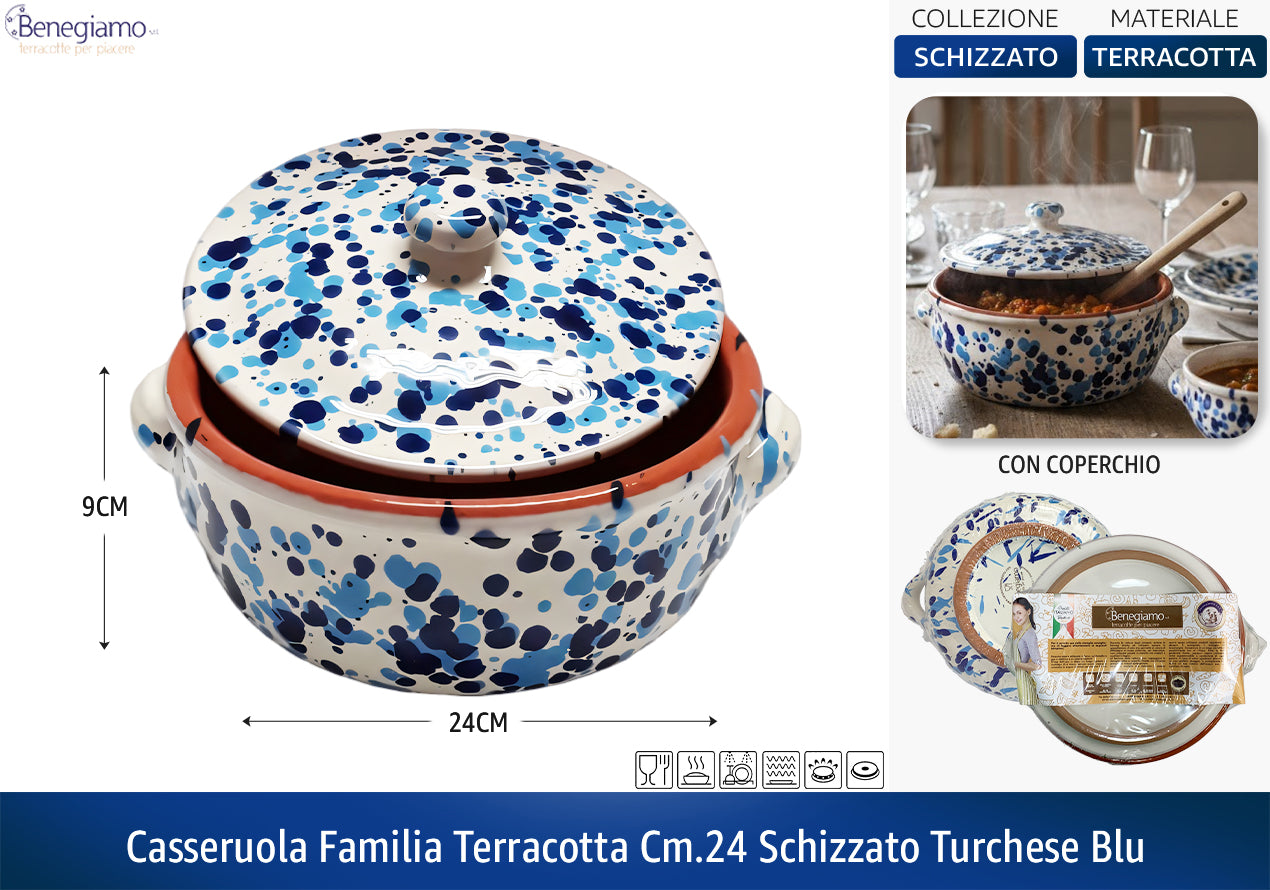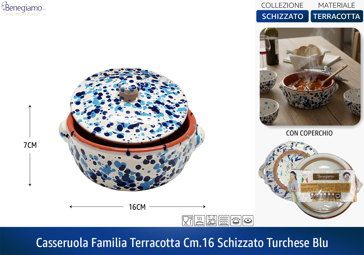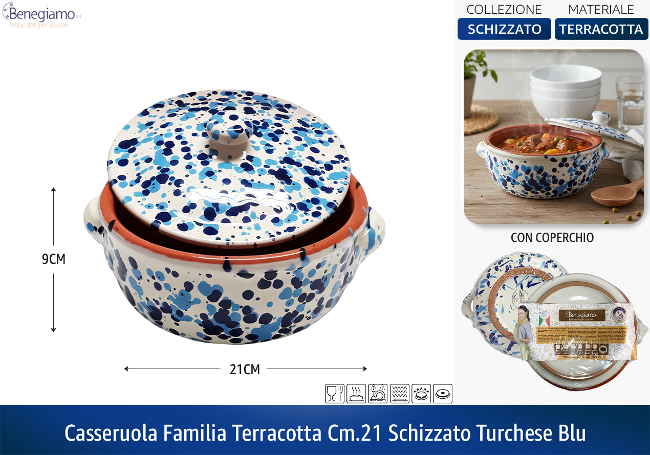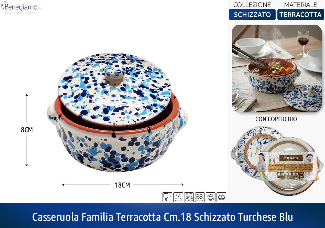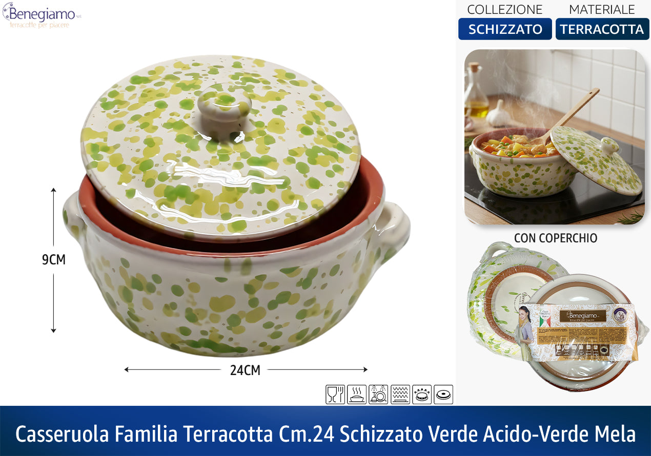 Casseruola in Terracotta con Coperchio Made in Italy - Linea Familia per Cucina Sana - Adatta a Forno e Gas