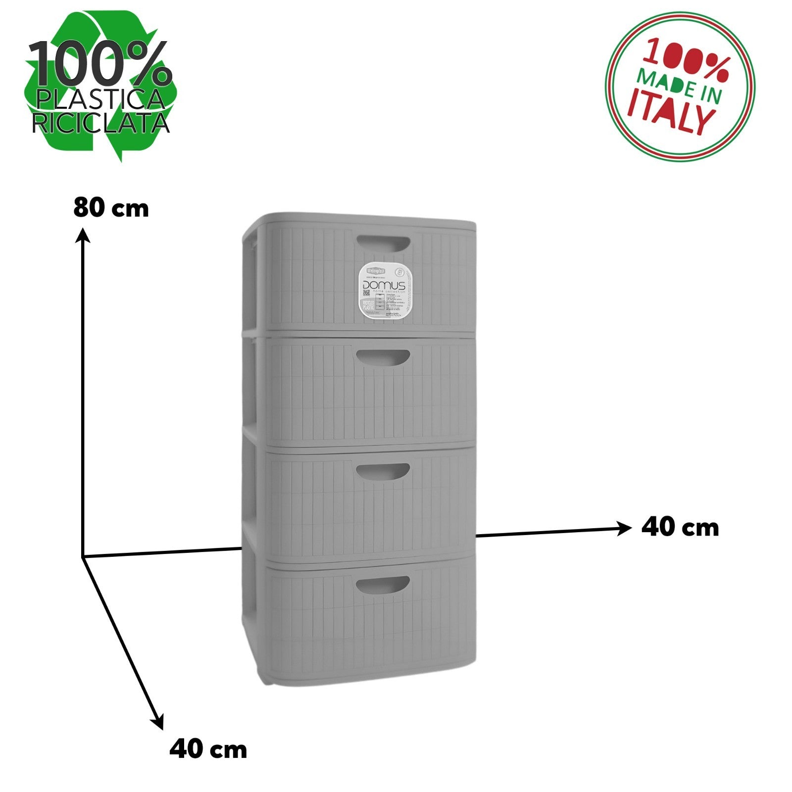 Cassettiera Mobiletto 4 Cassetti Plastica Riciclata Domus Moderna Made in Italy