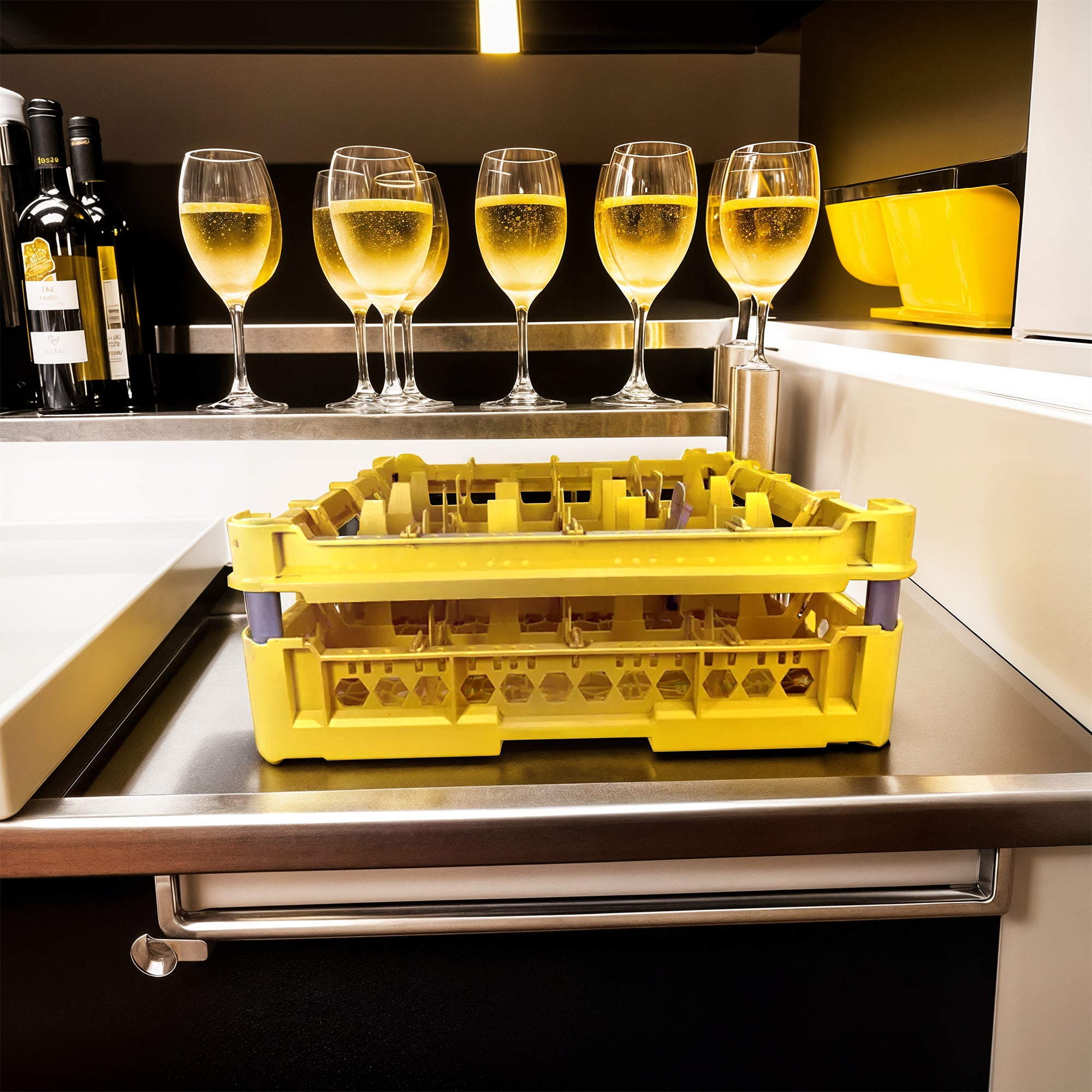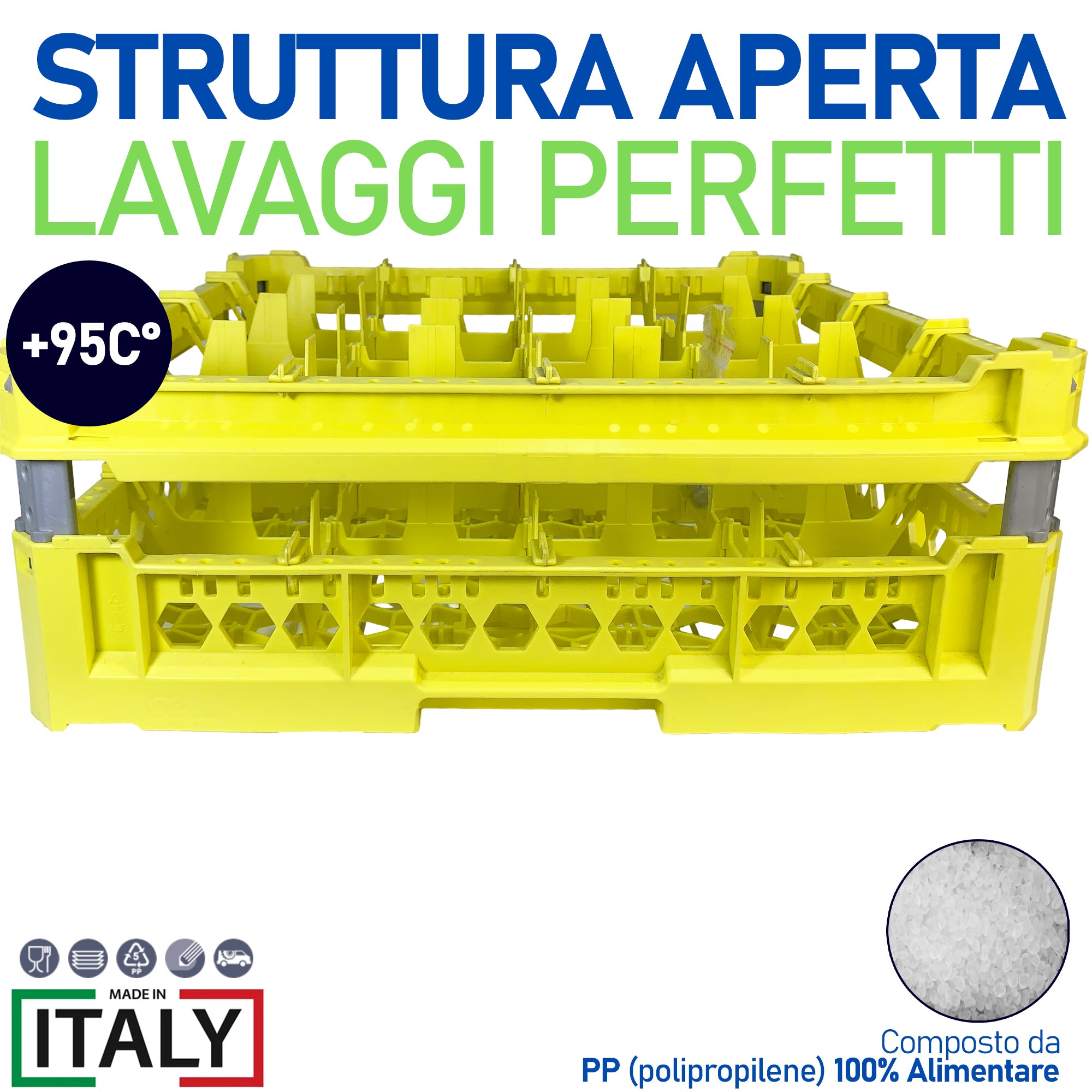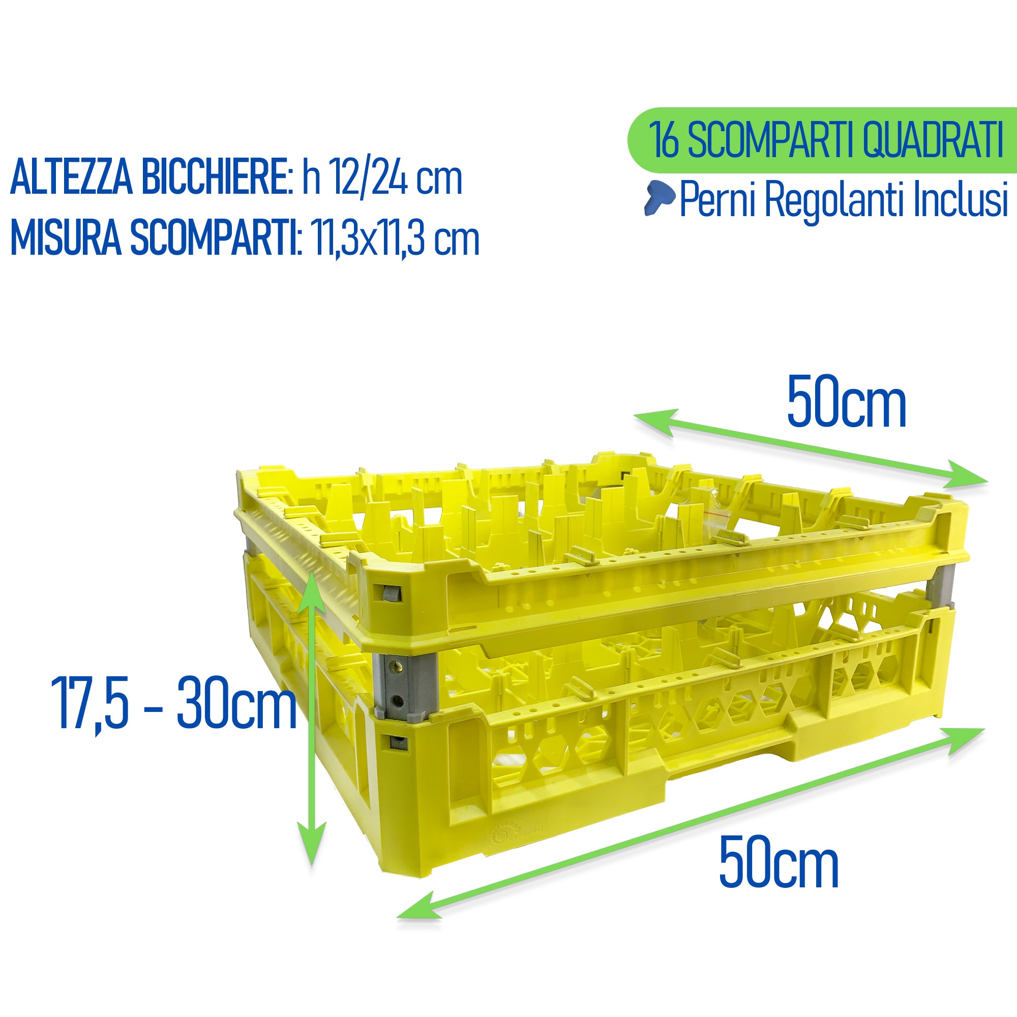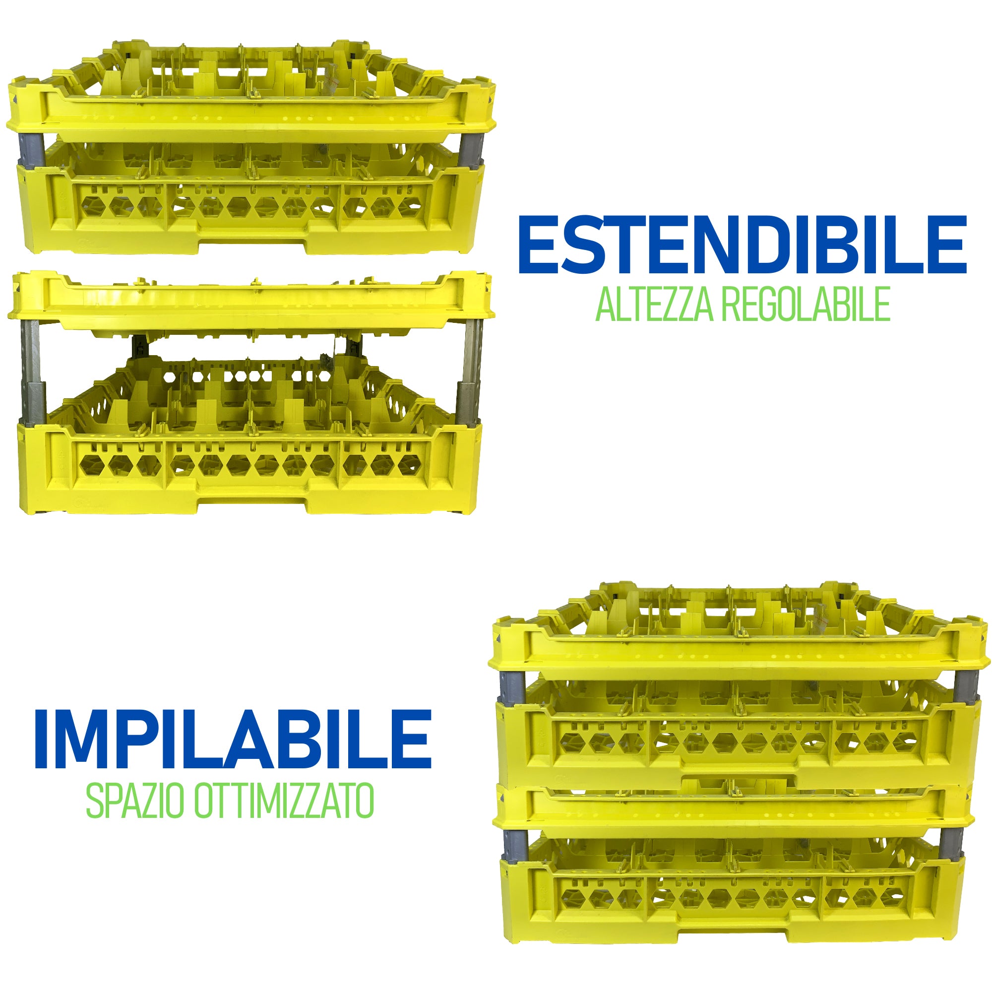 Cesta per Lavaggio 16 Bicchieri KIT 3 4x4 TOP Giallo, 50x50 cm, Made in Italy