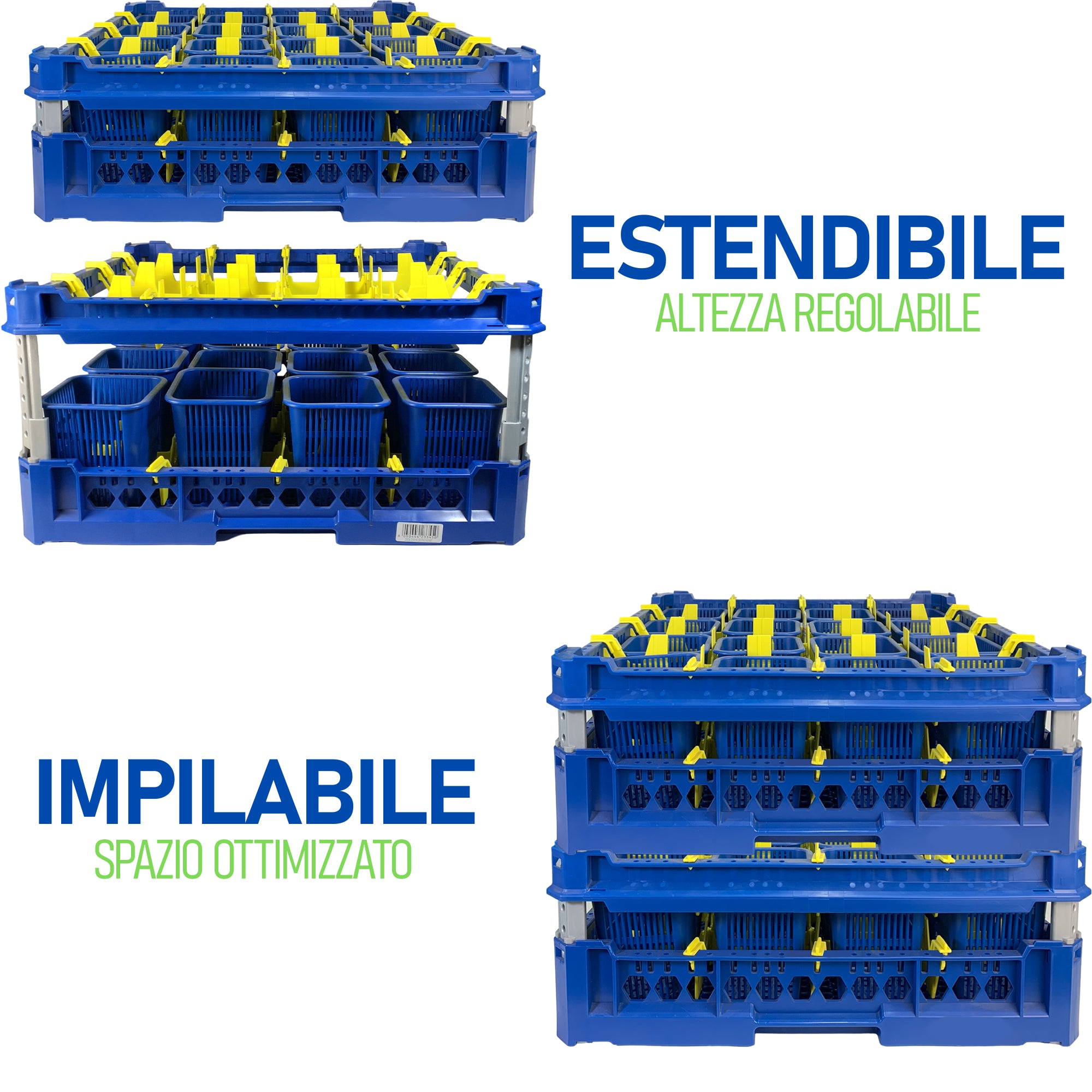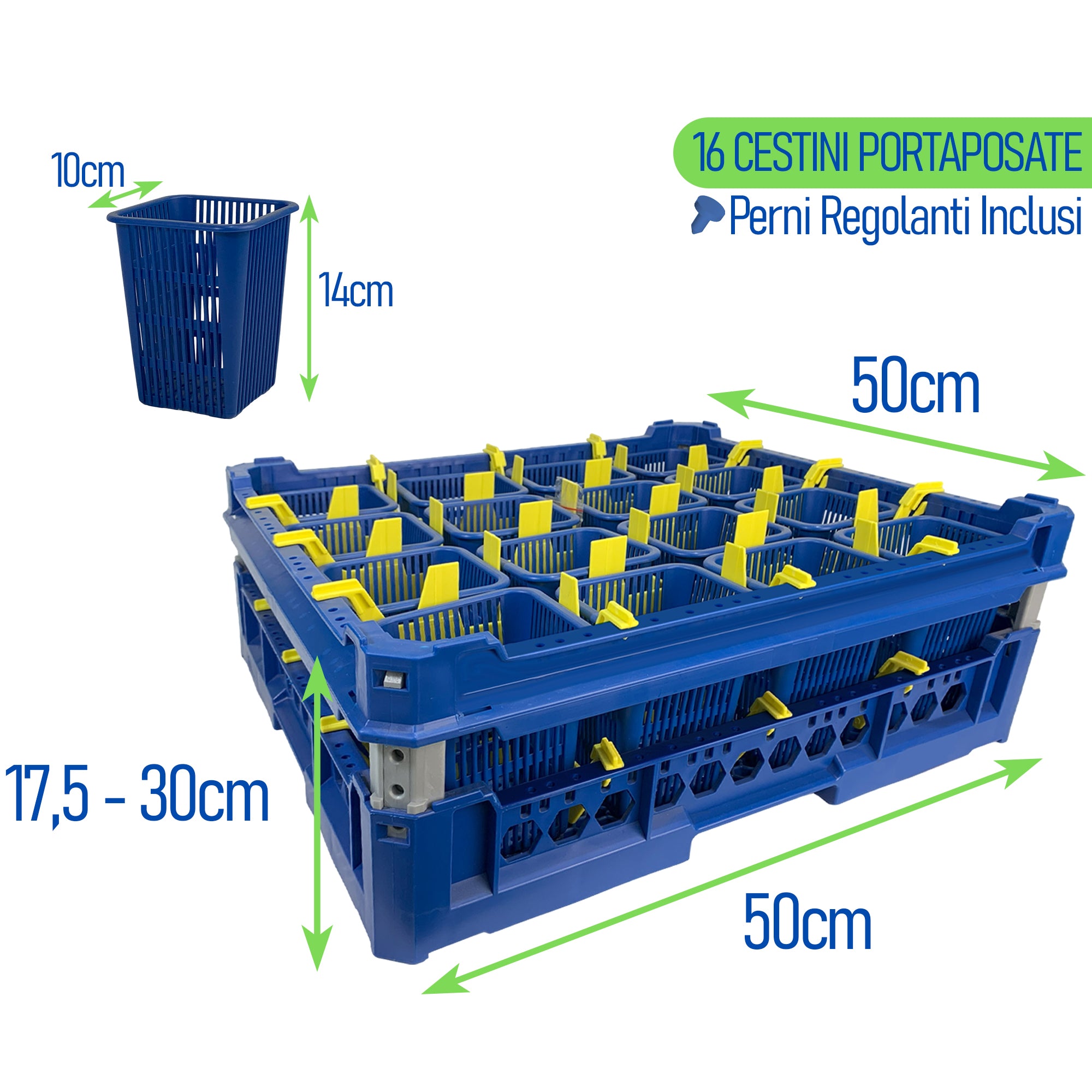 Genus Dei Cestello Impilabile Per Lavaggio 16 Cestini Portaposate Cm.51X51X17,5H