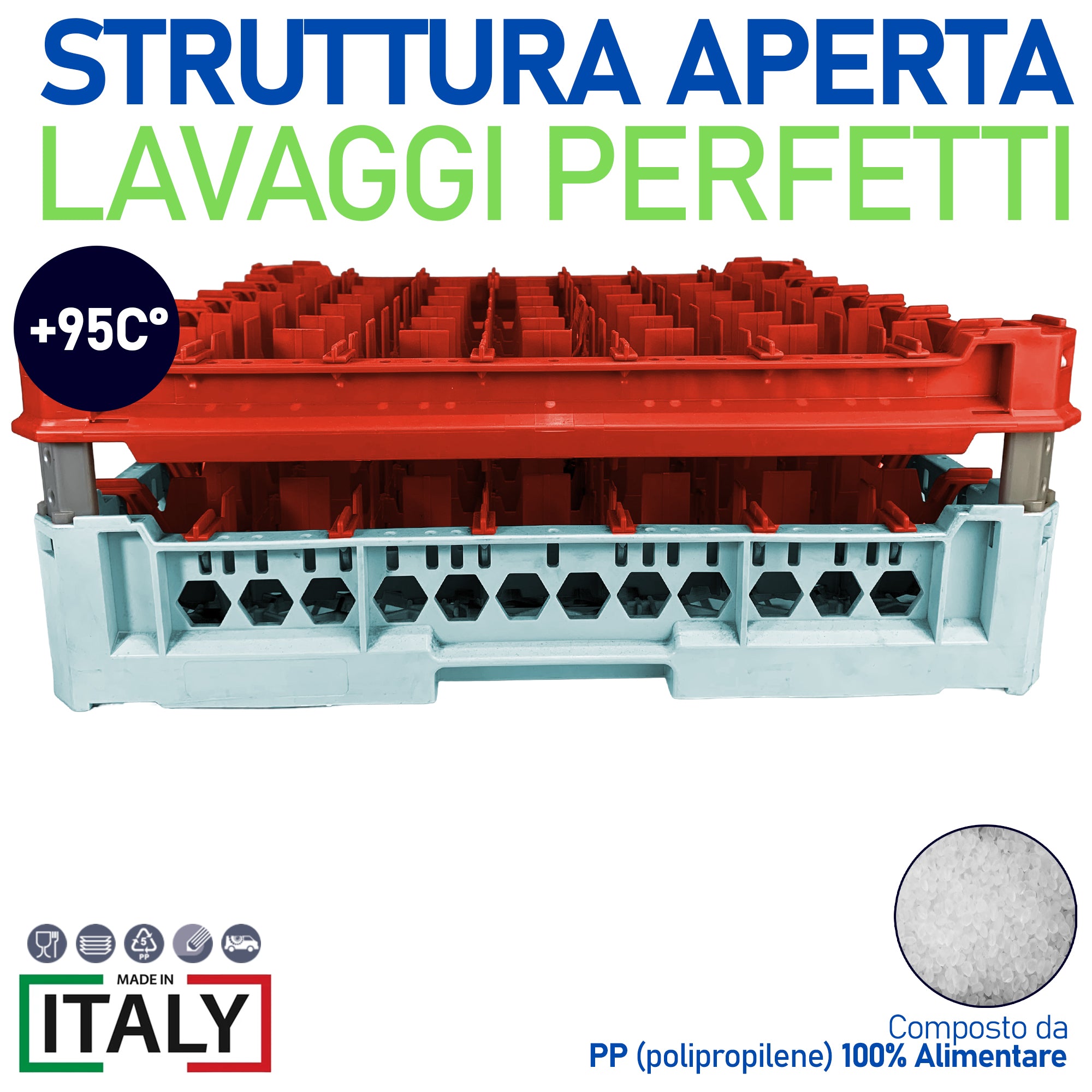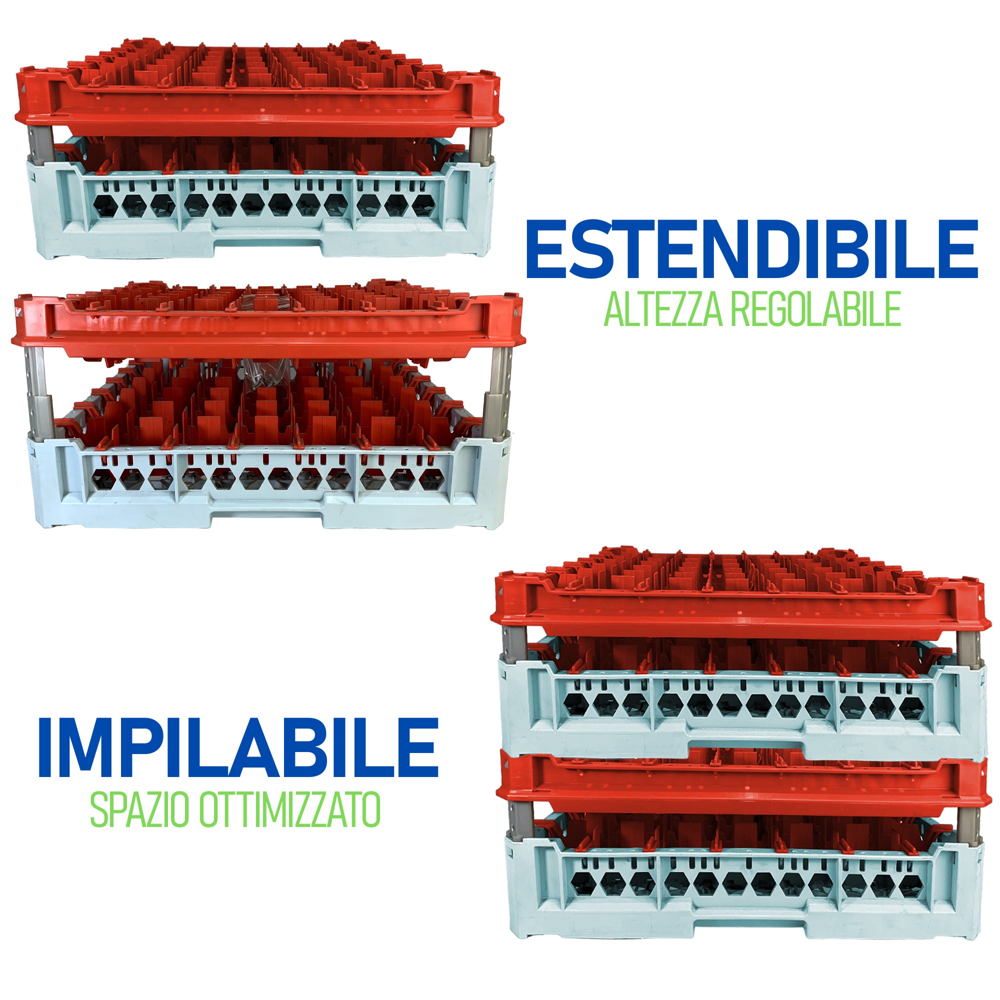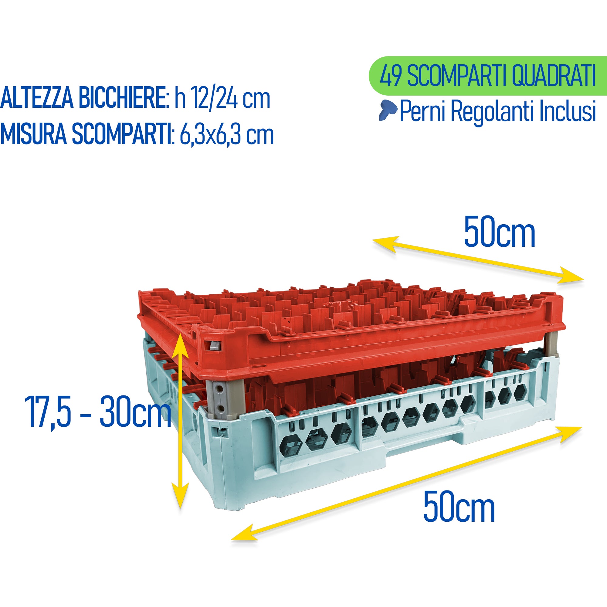 Genus Dei Cestello Impilabile Per Lavaggio 49 Bicchieri Adattabile Cm.49X49 Mm.120X240H