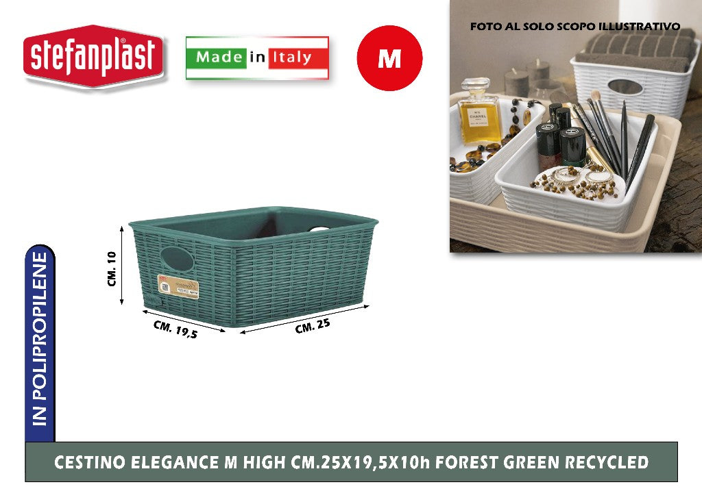 Cestino Elegance M High Cm.25X19,5X10H Forest Green Recycled