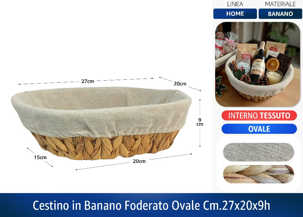 Cestino In Banano Foderato Ovale Cm.27X20X9H