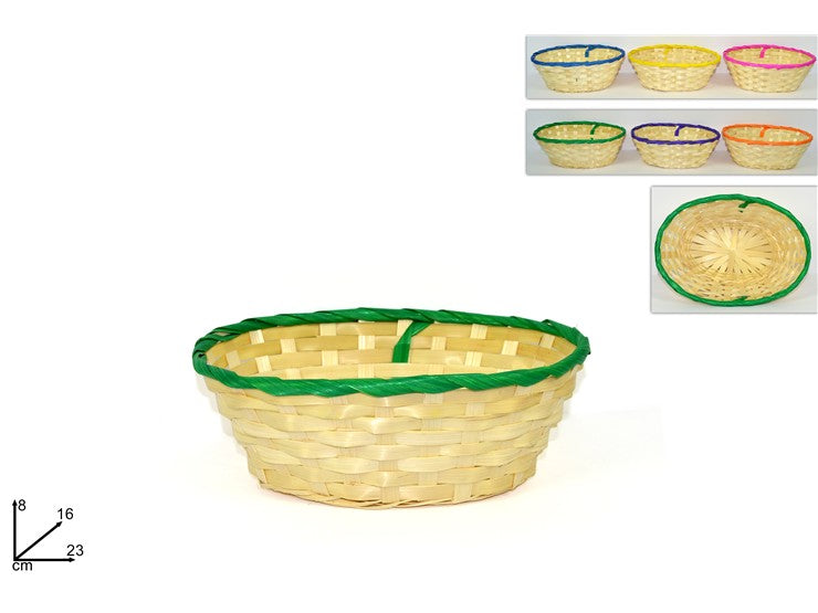 Cestino Intrecciato Ovale Cm.23X16X8H Bordo Colorato