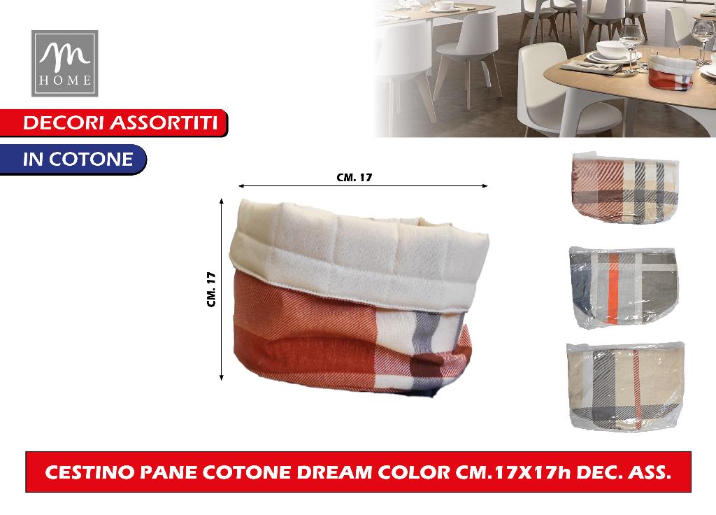 Cestino Pane Cotone Dream Color Cm.17X17H Dec. Ass.