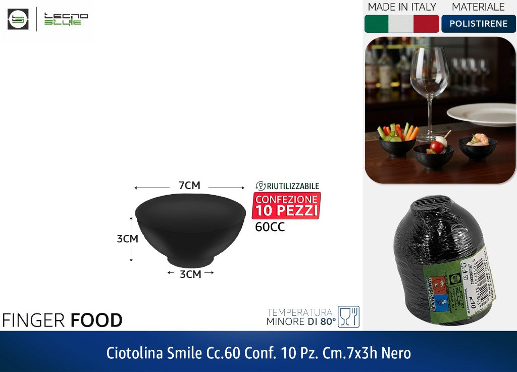 CIOTOLINA SMILE CC.60 CONF. 10 PZ. CM.7X3h NERO