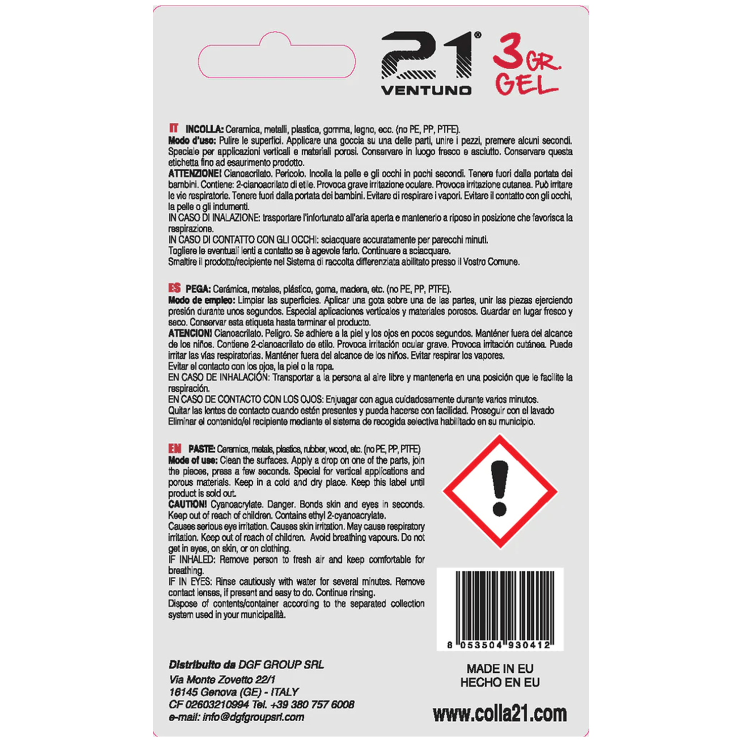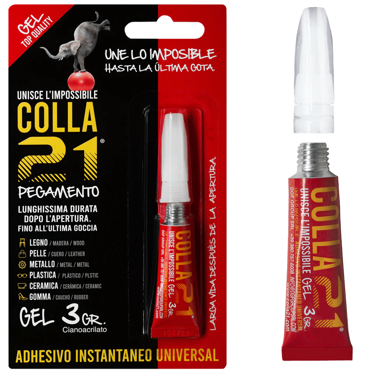 Colla 21 Gel – Adesivo Cianoacrilato Tixotropico Non Cola per Superfici Verticali e Riempimento