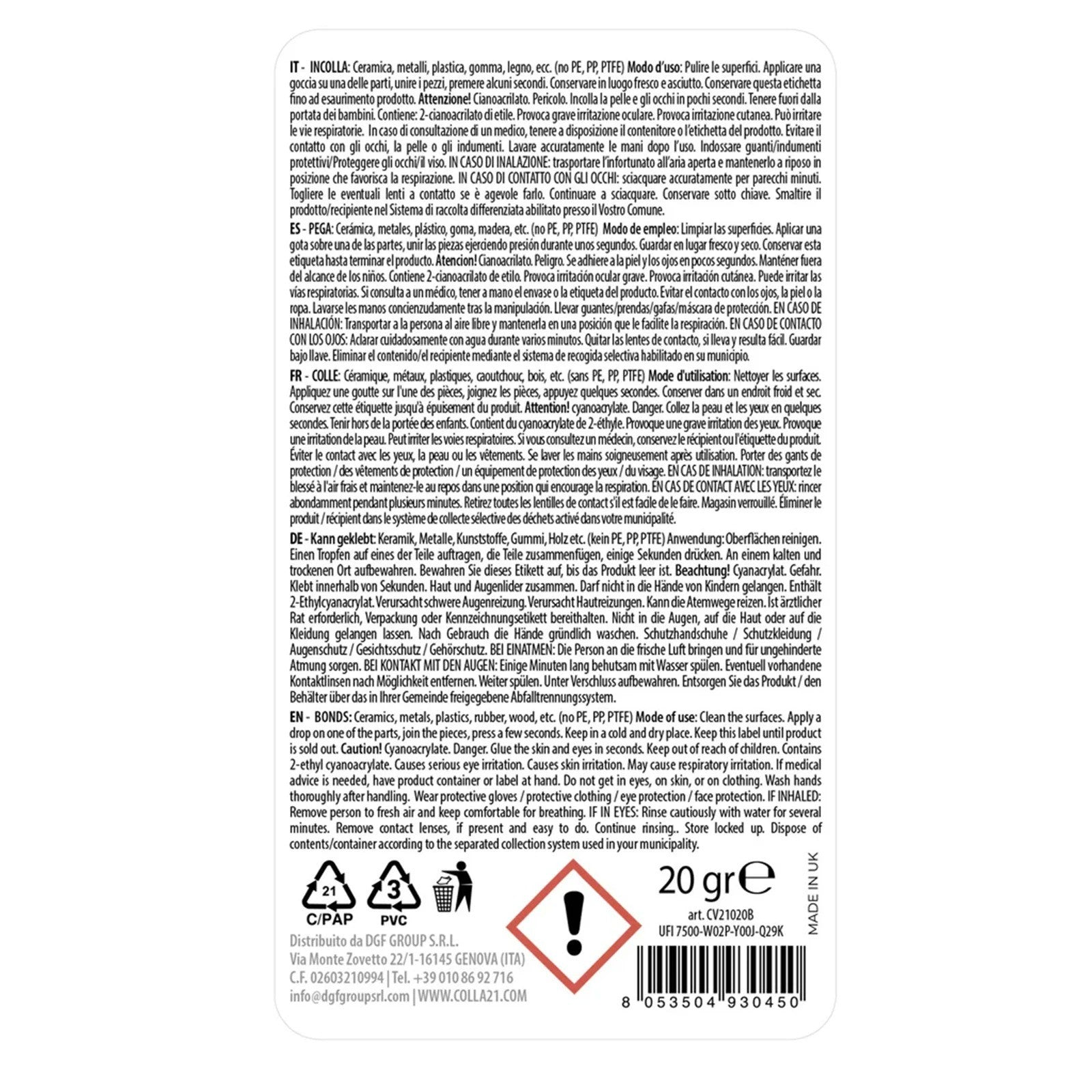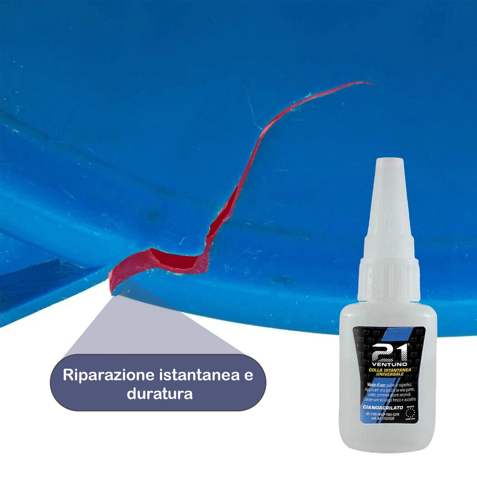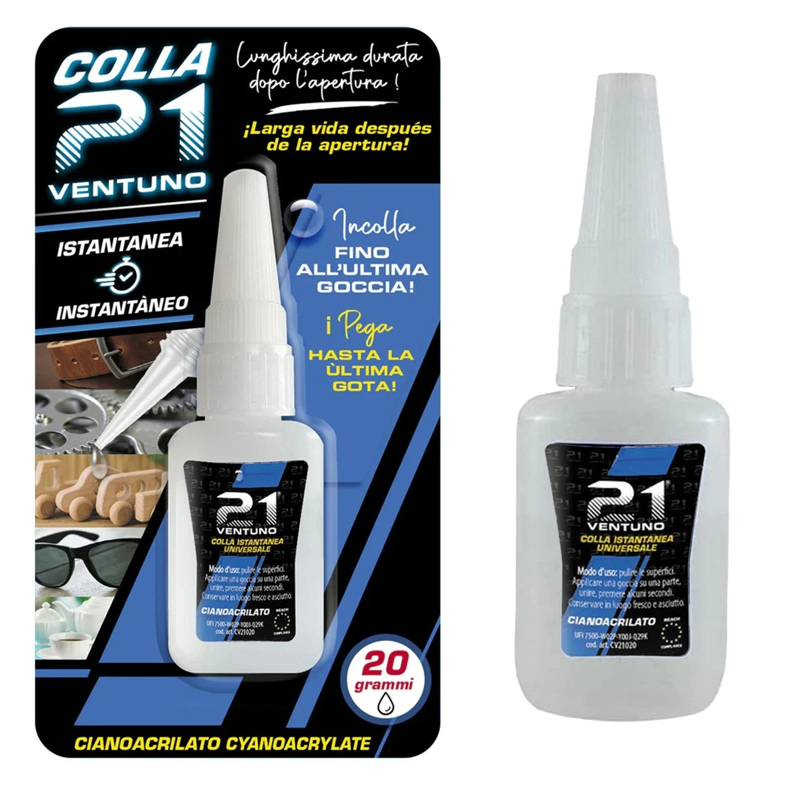 Colla Istantanea Cianoacrilato Universale – Metallo, Plastica, Ceramica, Gomma, Legno, Vetro – Colla21