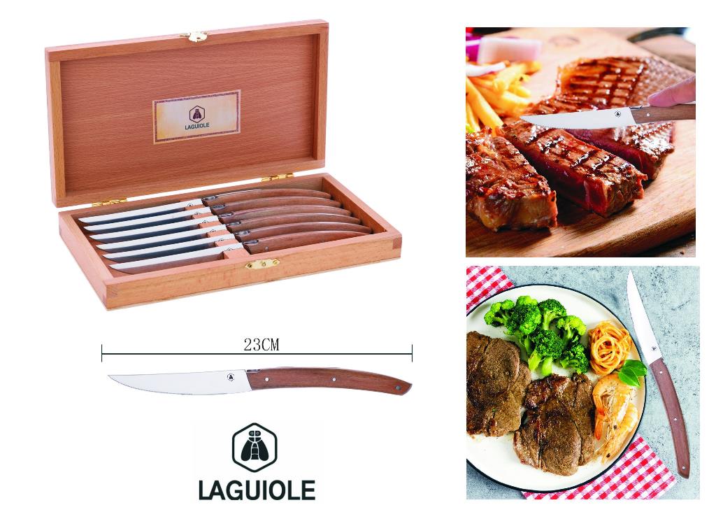 Laguiole - Laguiole 40268472 Scatola Da 6 Coltelli Da Bistecca (23 Cm) Con Lama In Acciaio Inossidabile E Manico In Legno Marrone Pakka