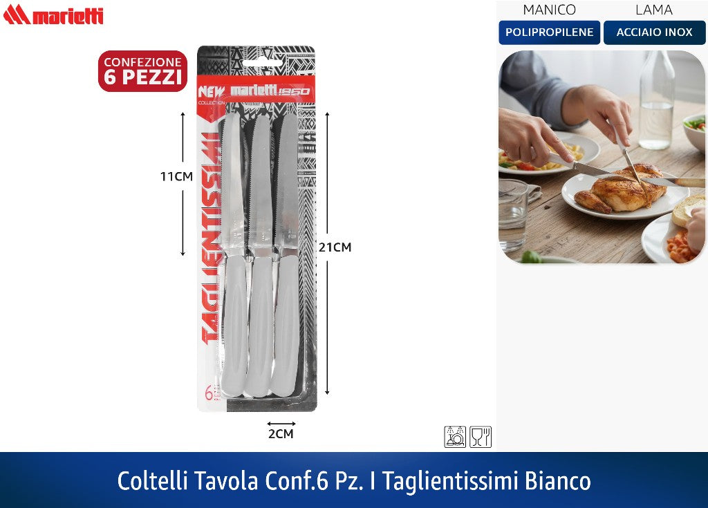 Coltelli Tavola Conf.6 Pz. I Taglientissimi Bianco
