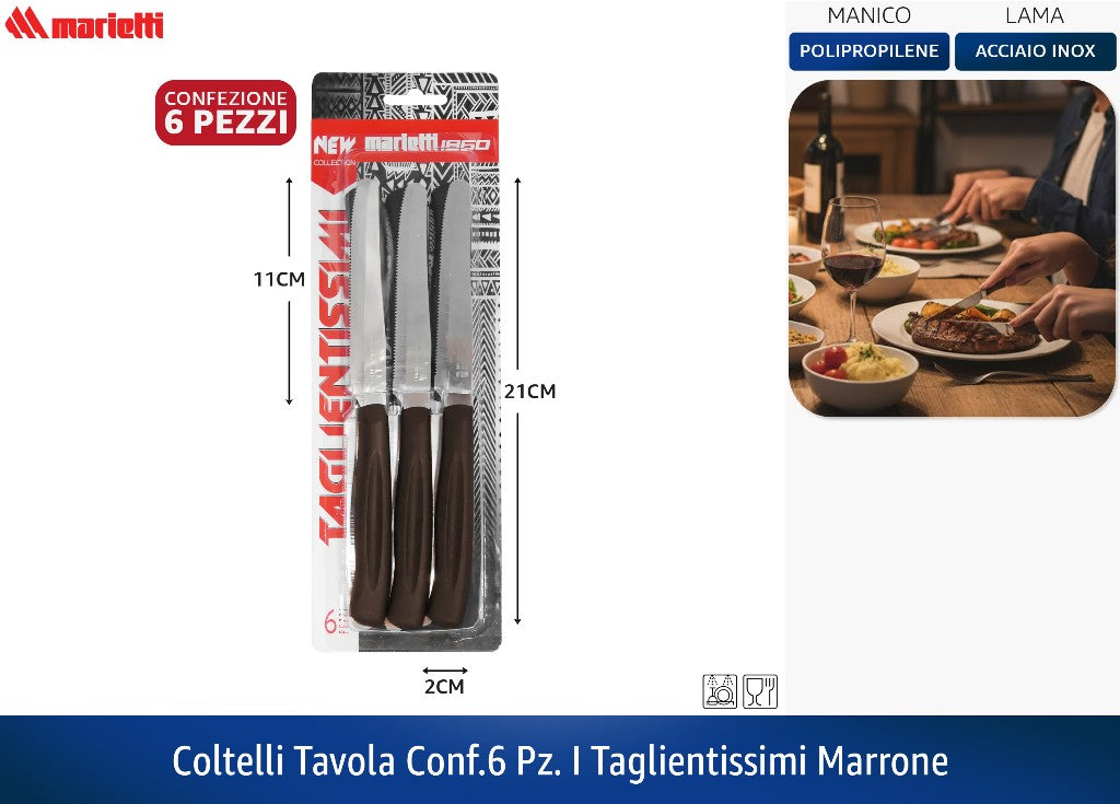 Coltelli Tavola Conf.6 Pz. I Taglientissimi Marrone