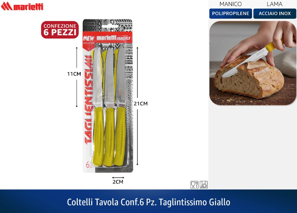 COLTELLI TAVOLA CONF.6 PZ. TAGLINTISSIMO GIALLO