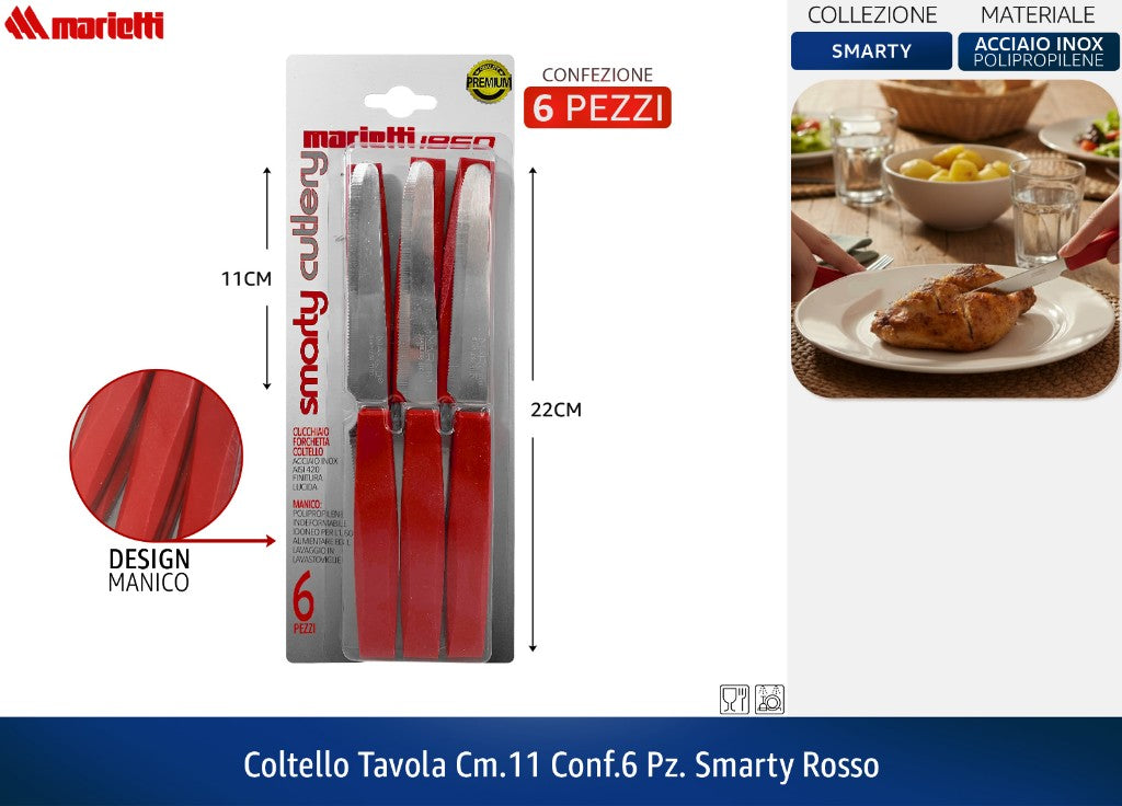 COLTELLO TAVOLA CM.11 CONF.6 PZ. SMARTY ROSSO