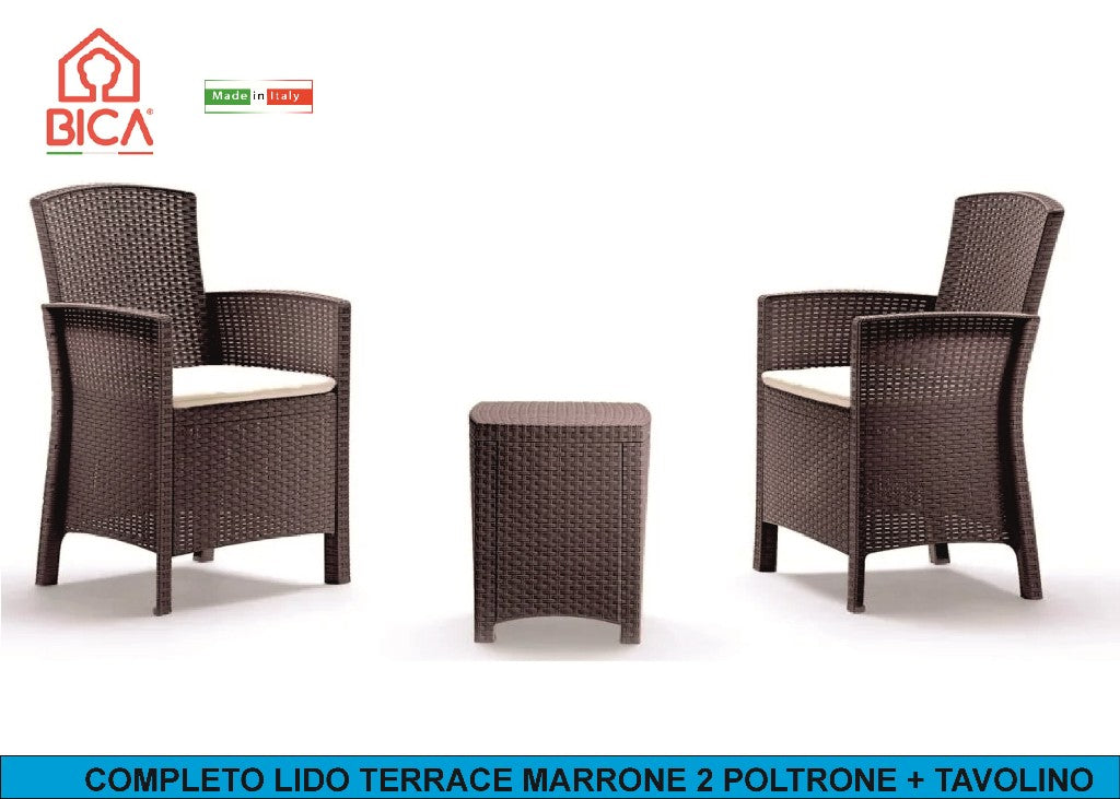 COMPLETO LIDO TERRACE MARRONE 2 POLTRONE + TAVOLINO