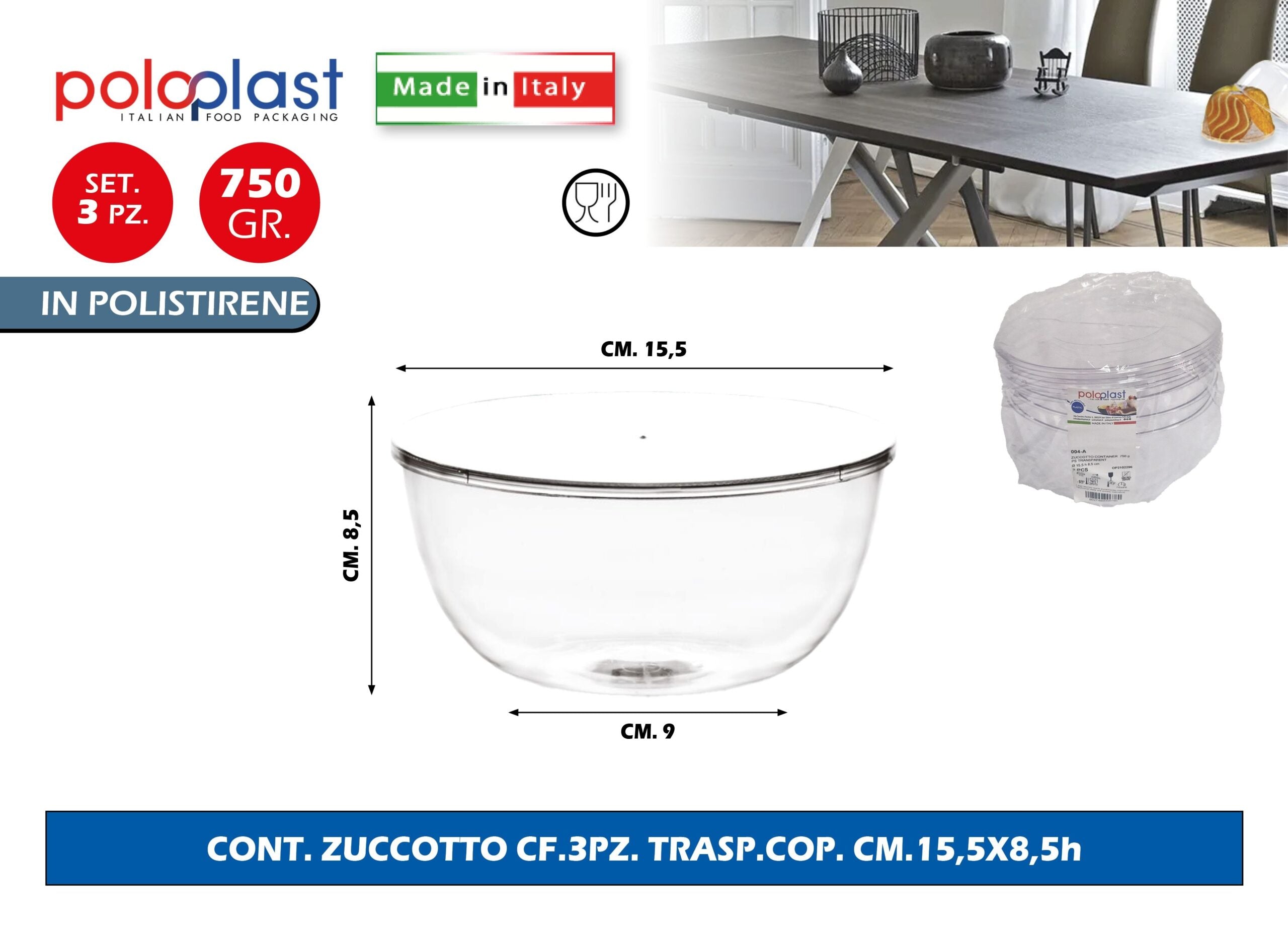 Poloplast Cont. Zuccotto Cf.3Pz. Trasp.Cop. Cm.15,5X8,5H