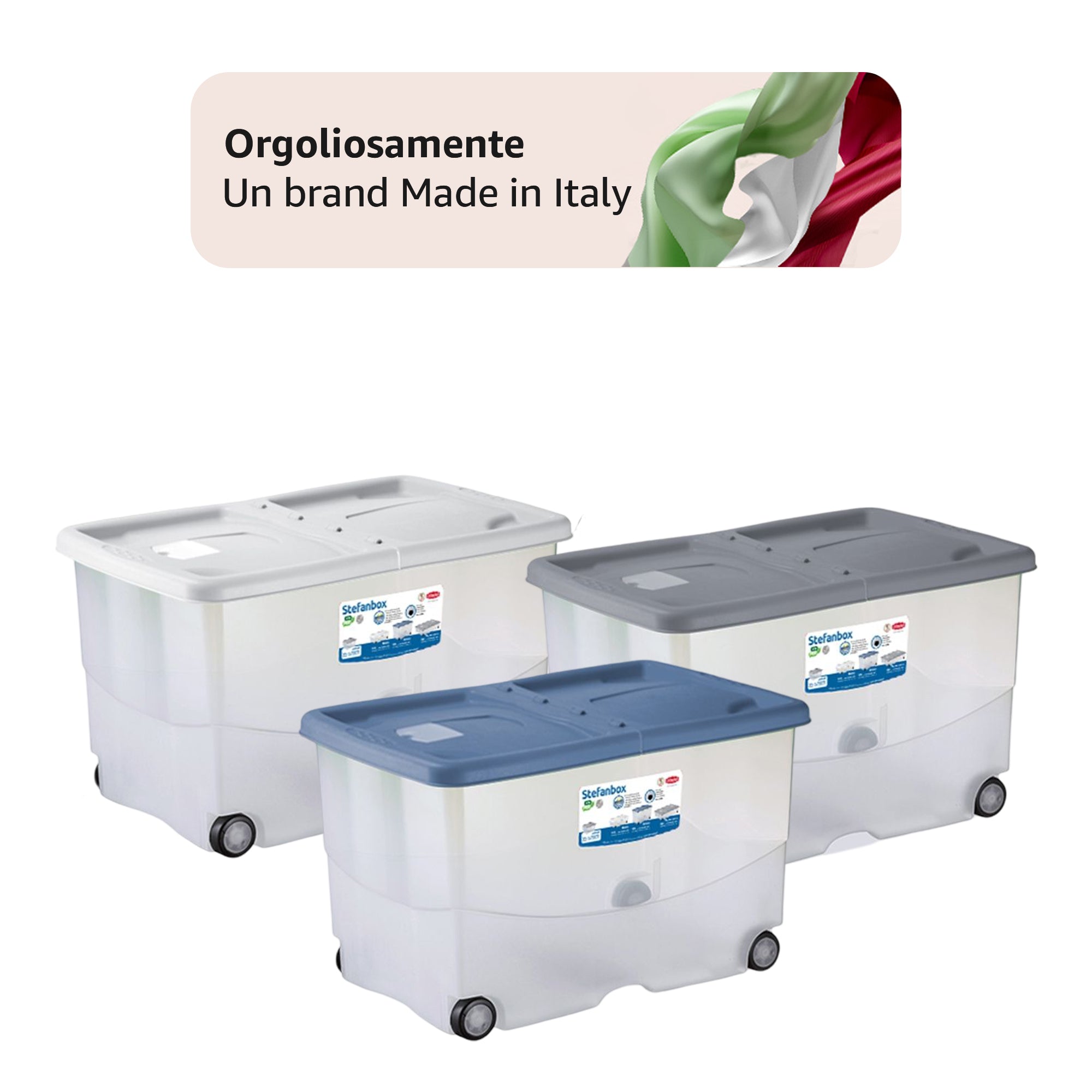 Contenitore Salvaspazio con Ruote Stefanplast Vasco 57L – Box Organizer per Cambio Stagione e Giocattoli