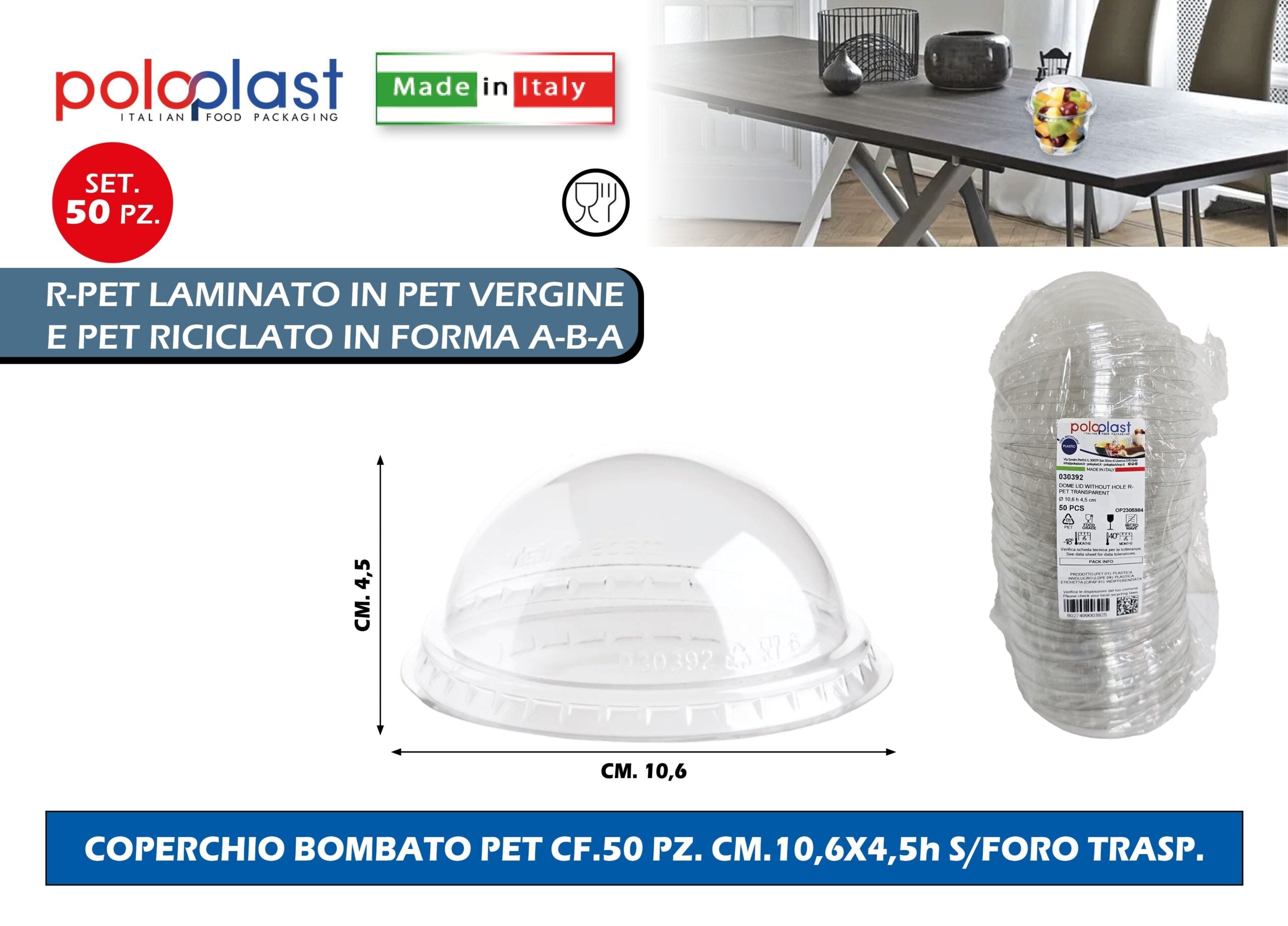 Poloplast Coperchio Bombato Pet Cf.50 Pz. Cm.10,6X4,5H S/Foro Trasp.
