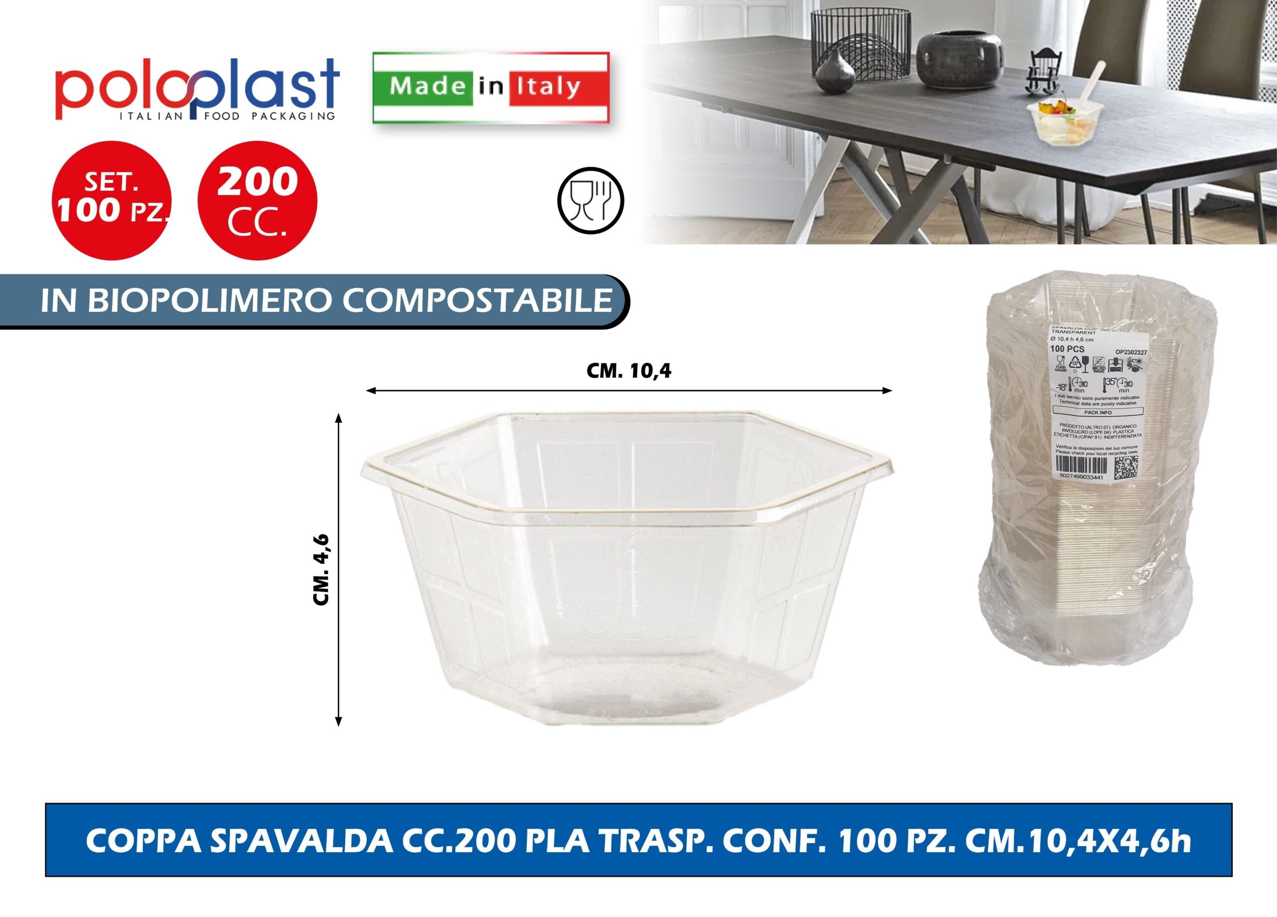 Poloplast Coppa Spavalda Cc.200 Pla Trasp. Conf. 100 Pz. Cm.10,4X4,6H