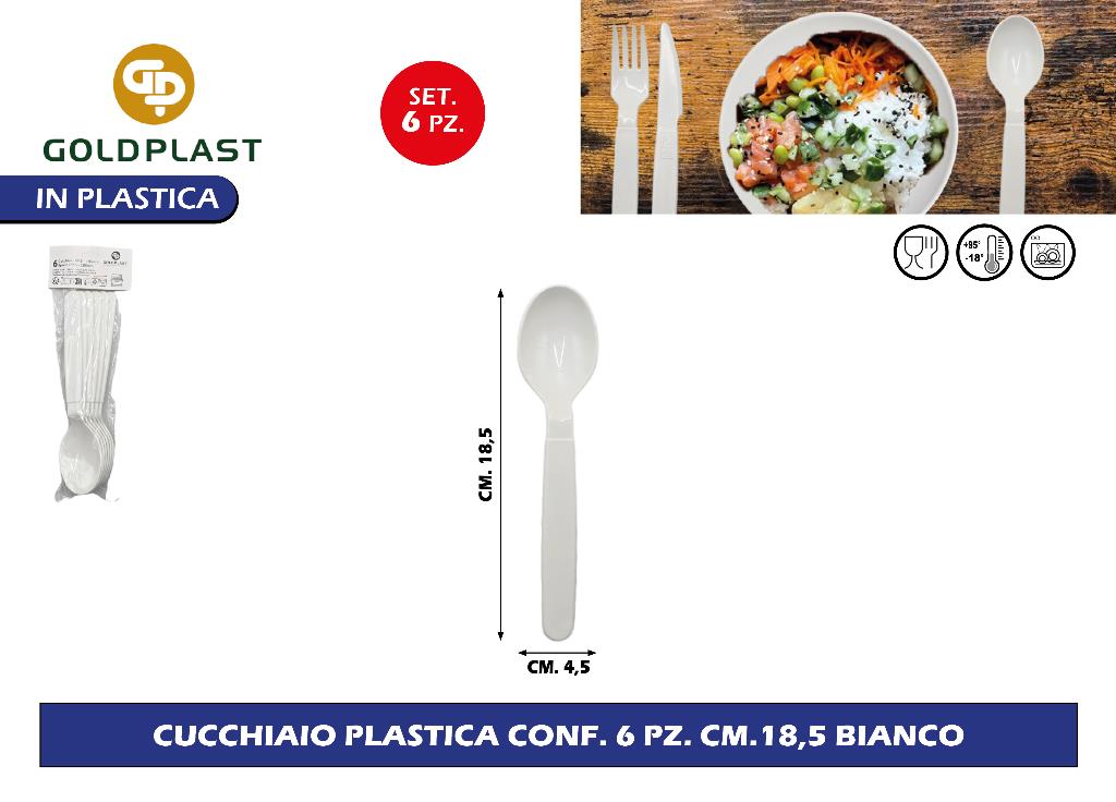 Cucchiaio Plastica Conf. 6 Pz. Cm.18,5 Bianco