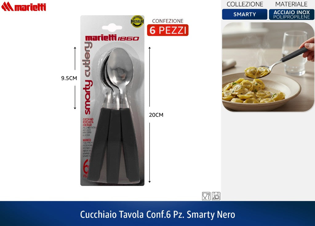 CUCCHIAIO TAVOLA CONF.6 PZ. SMARTY NERO