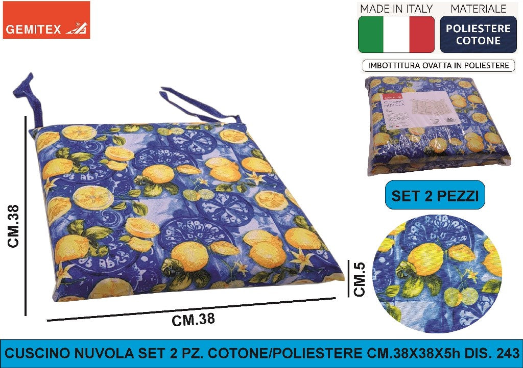 Cuscino Nuvola Set 2 Pz. Cotone/Poliestere Cm.38X38X5H Dis. 243