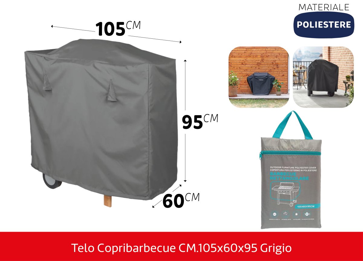 Custodia Barbecue 105x60x95 cm Grigia - Protezione da Polvere e Pioggia