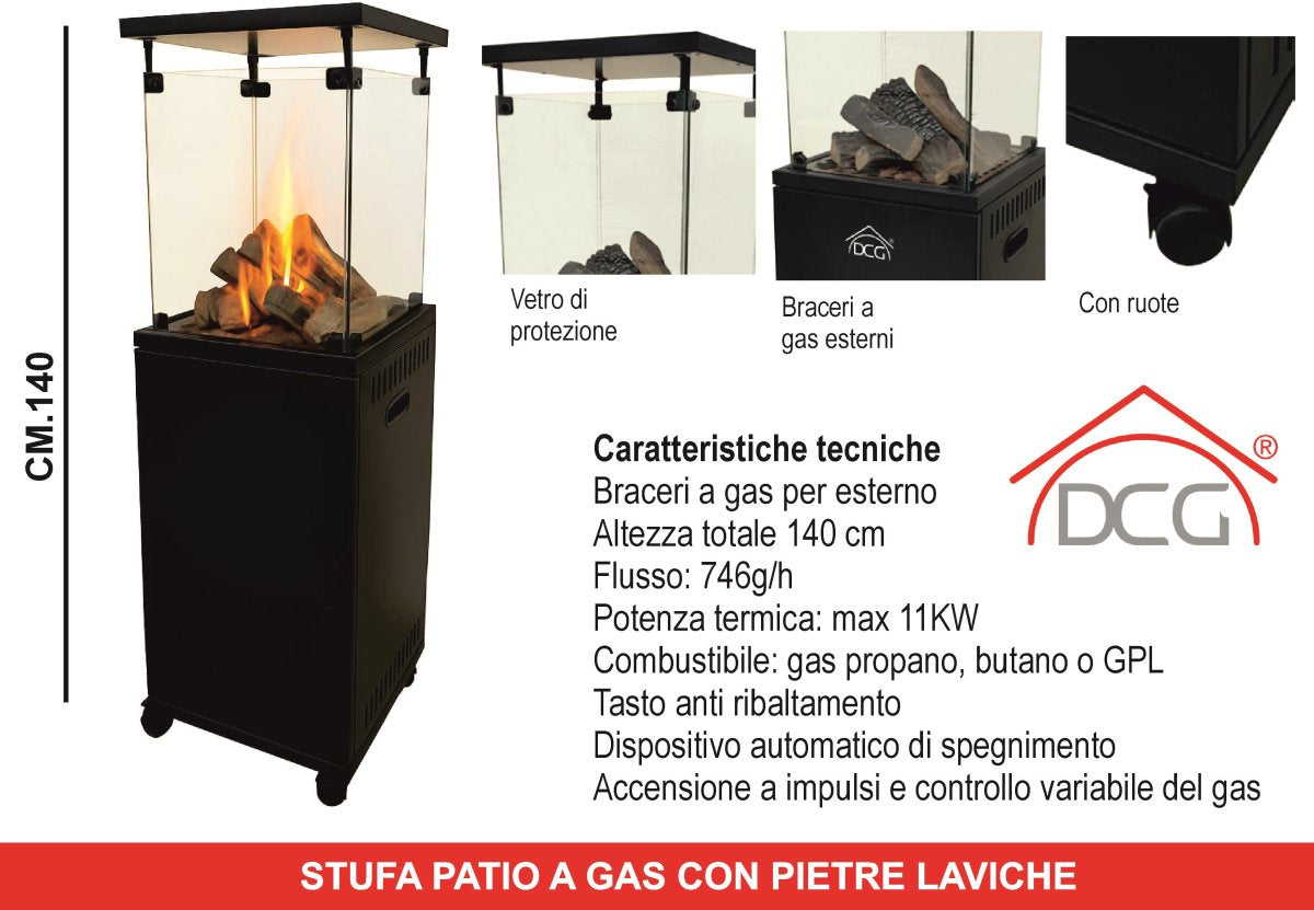 DCG Stufa Patio a Gas con Pietra Lavica in Ceramica