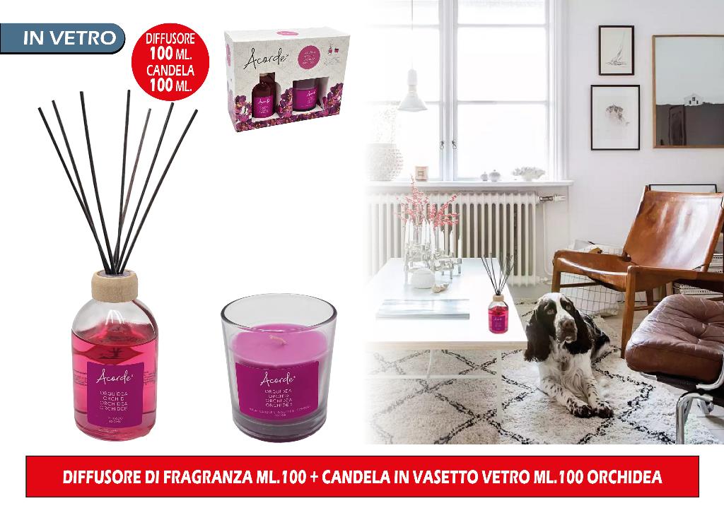 DIFFUSORE DI FRAGRANZA ML.100 + CANDELA IN VASETTO VETRO ML.100 ORCHIDEA