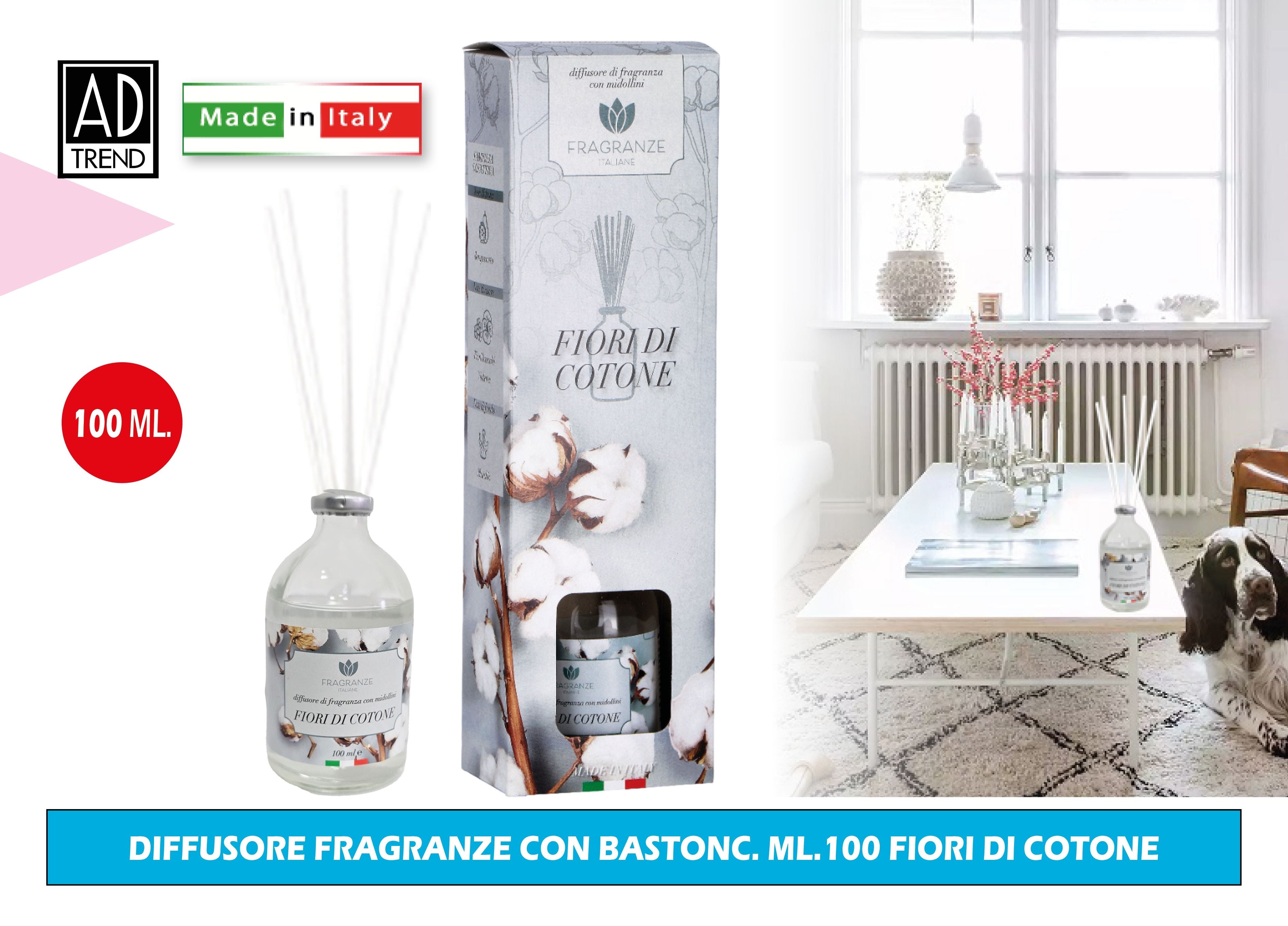 Diffusore Fragranze Con Bastonc. Ml.100 Fiori Di Cotone