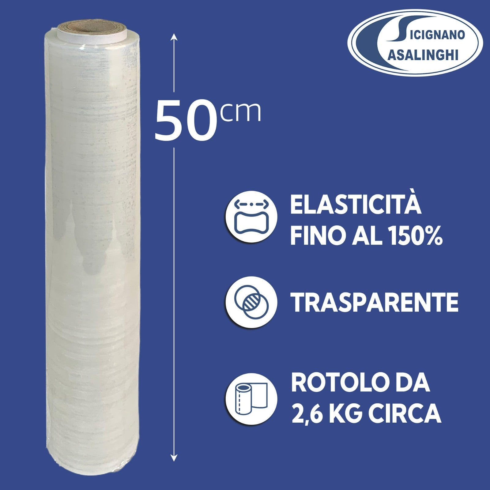 Film Estensibile Manuale Trasparente per Imballaggi 1-3-6 Bobine 2,6kg 50cm Anima Ø4,7cm