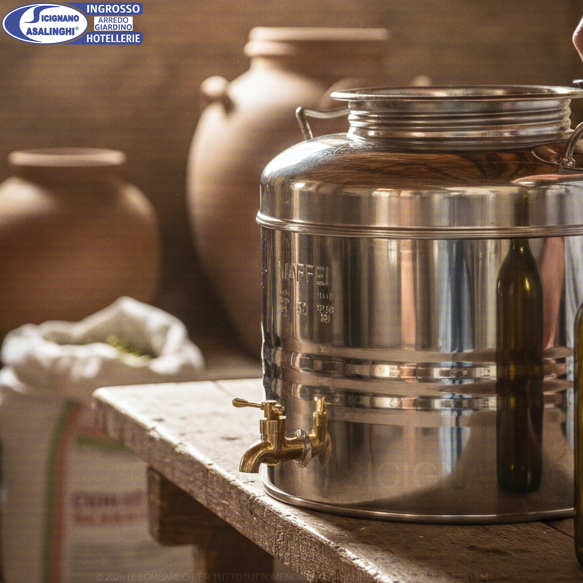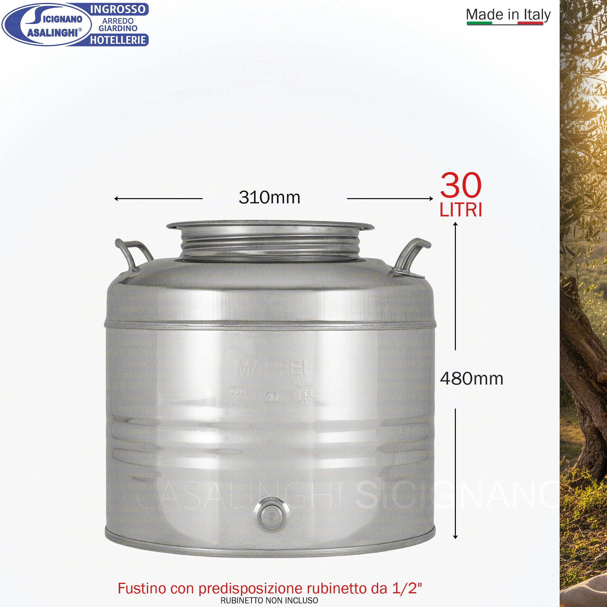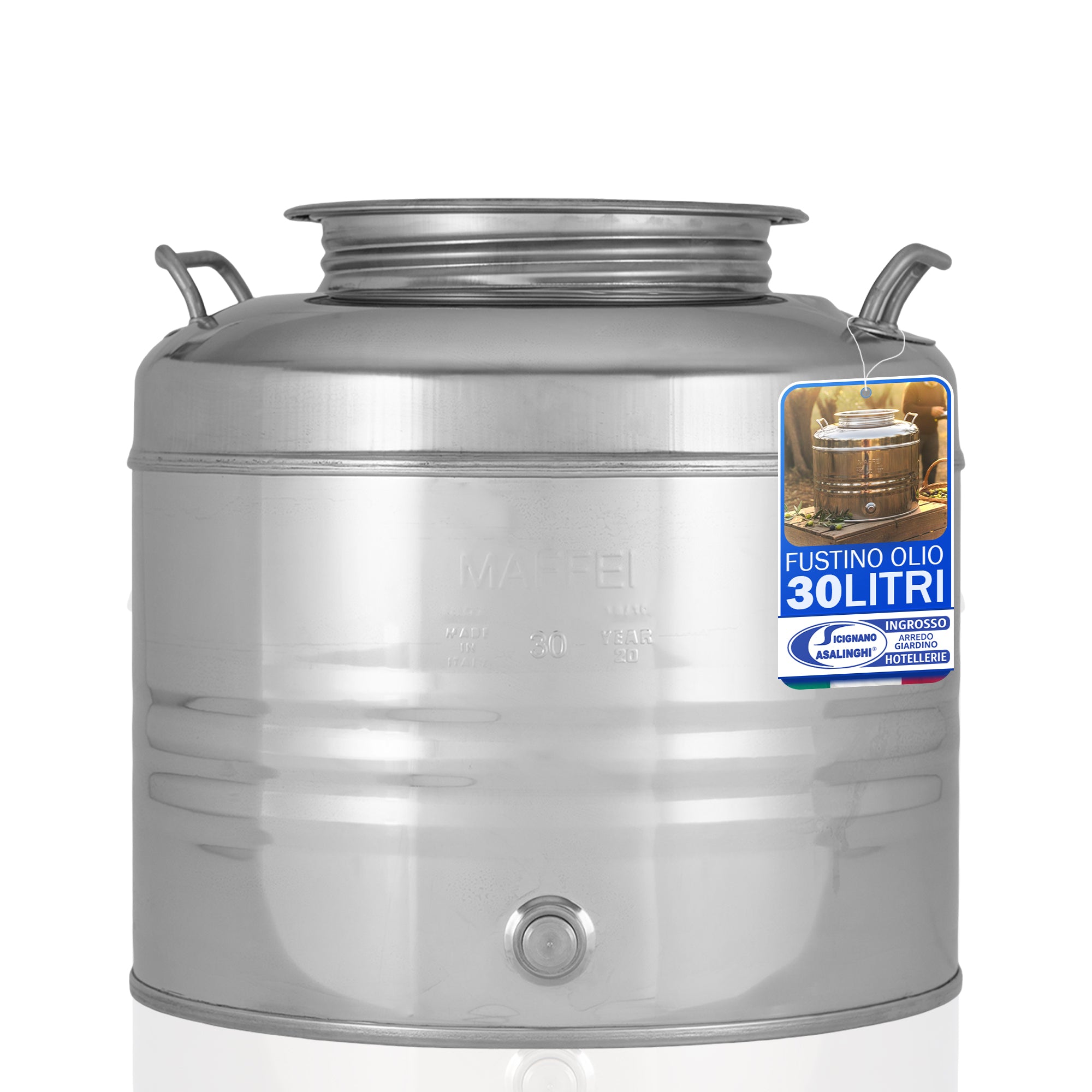 Fustino Olio 30L in Acciaio Inox 18/10 AISI 304 BA - Made in Italy
