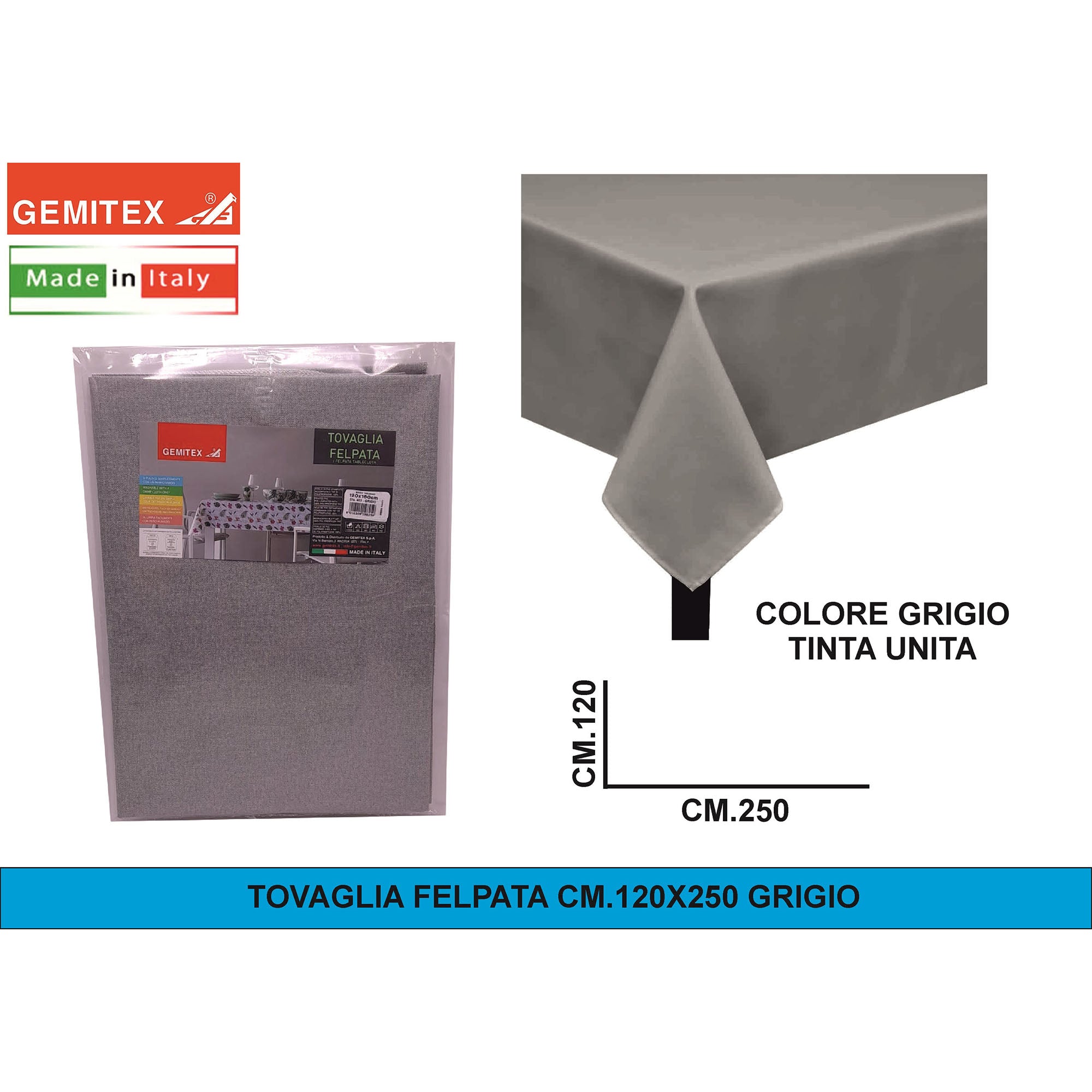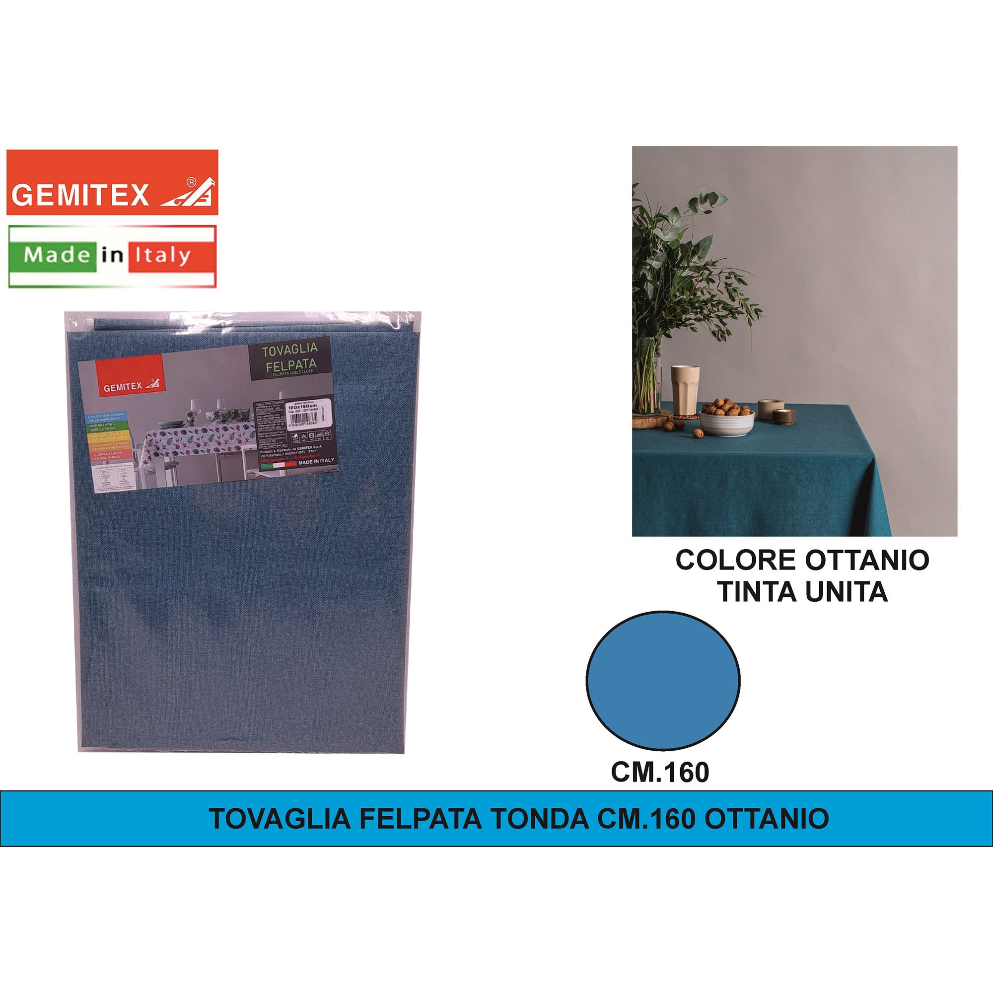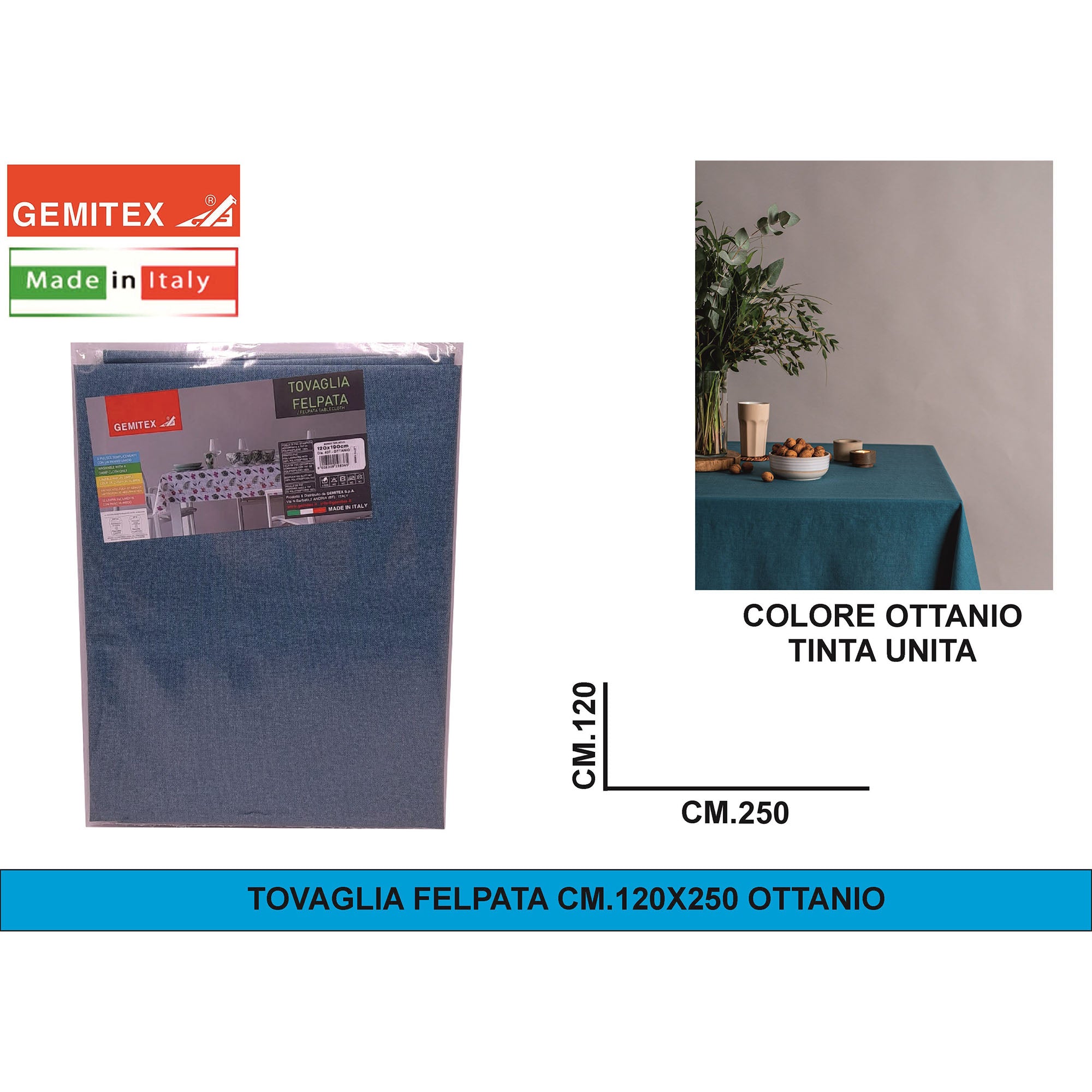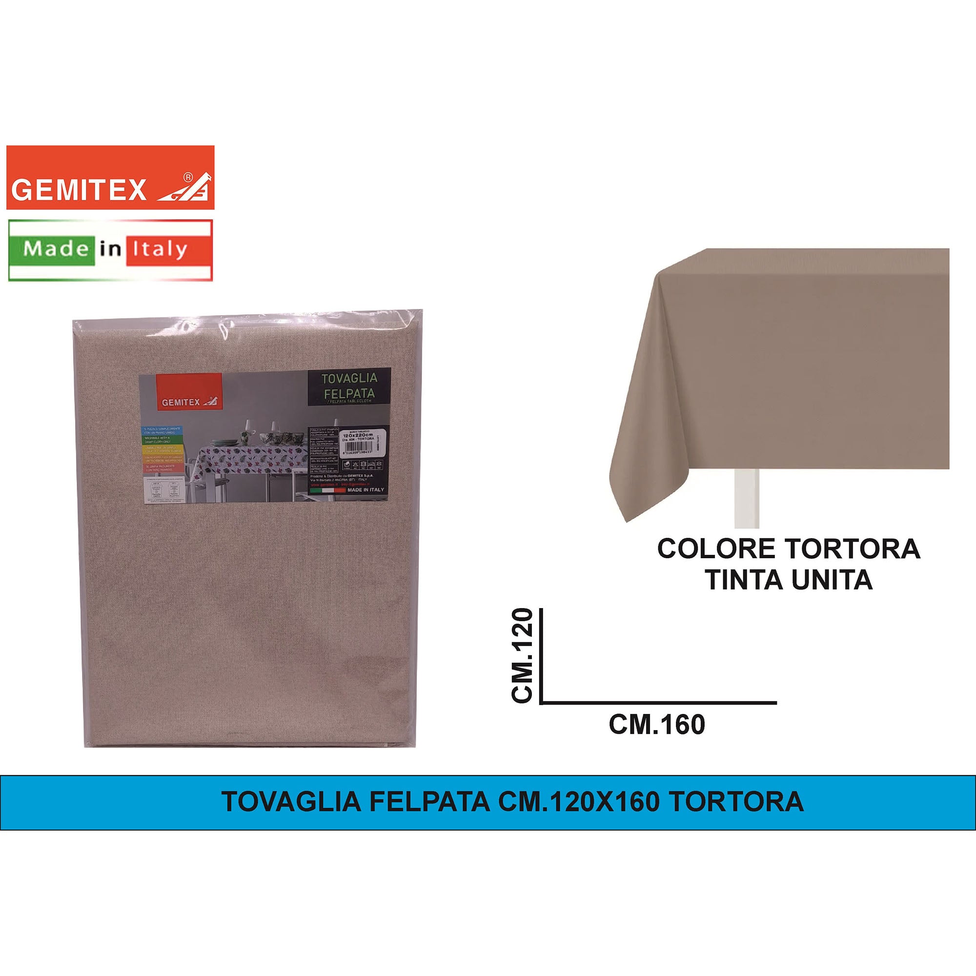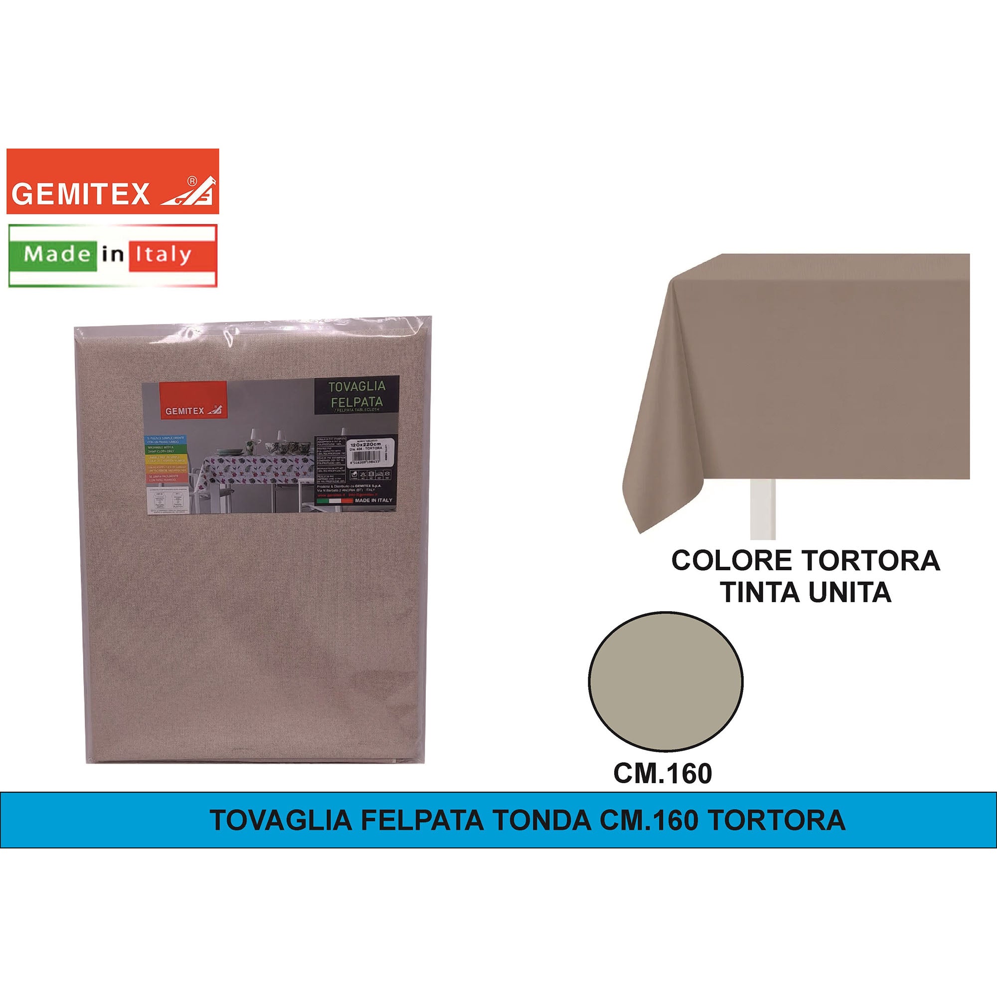 Gemitex Tovaglia Felpata, Made in Italy, Misure 120x190cm, 120x220cm, 120x250cm, 140x140cm e Ø160cm | Diversi Colori Disponibili