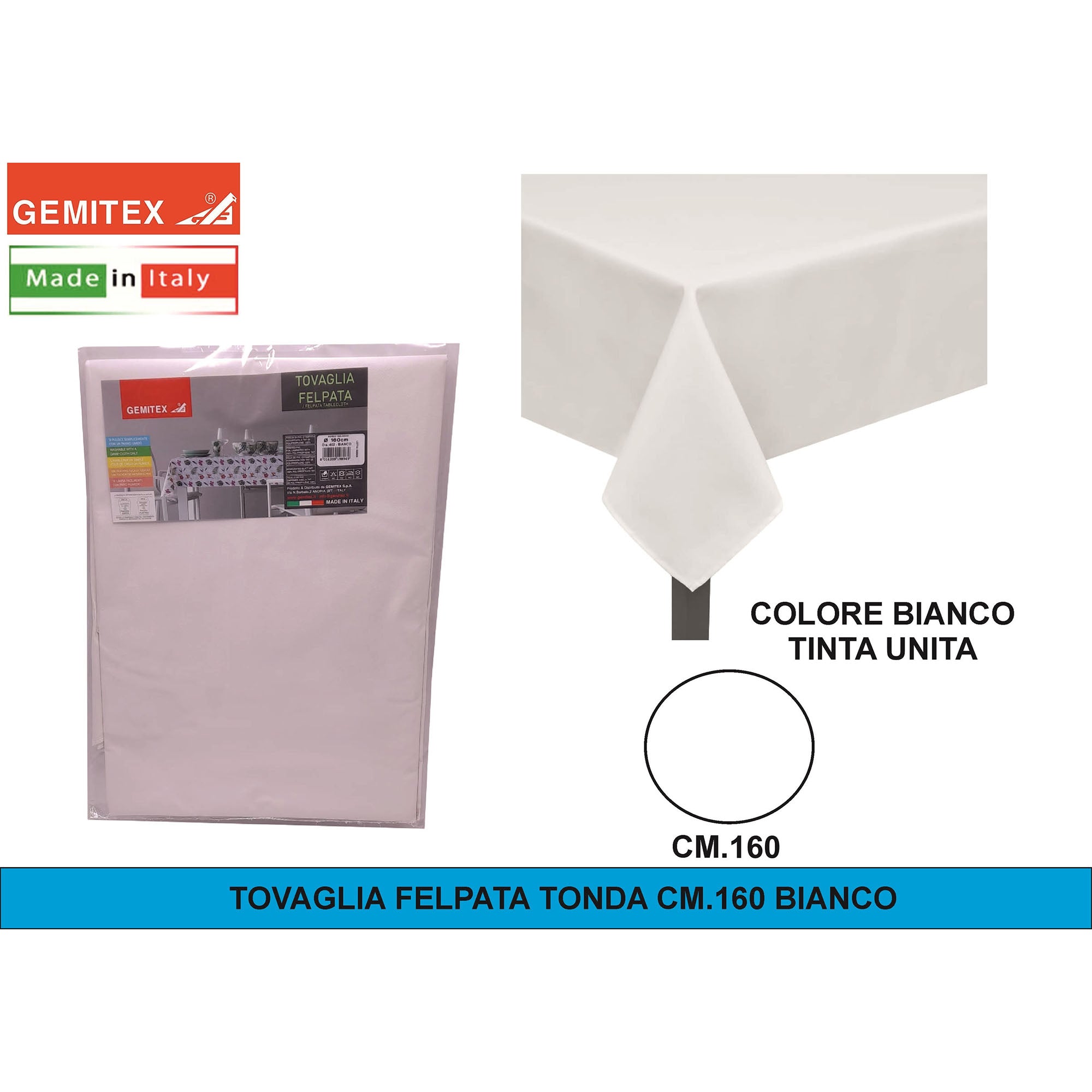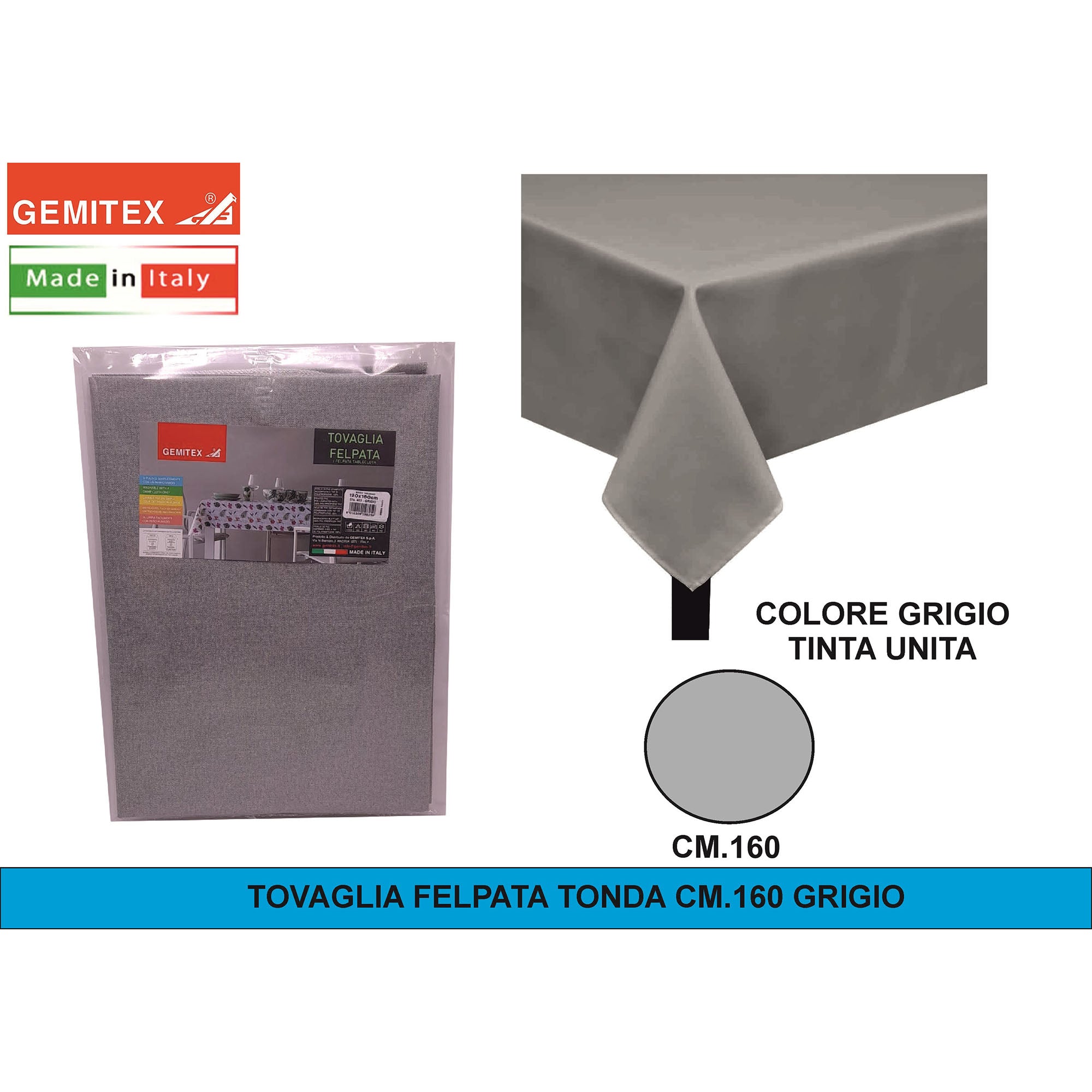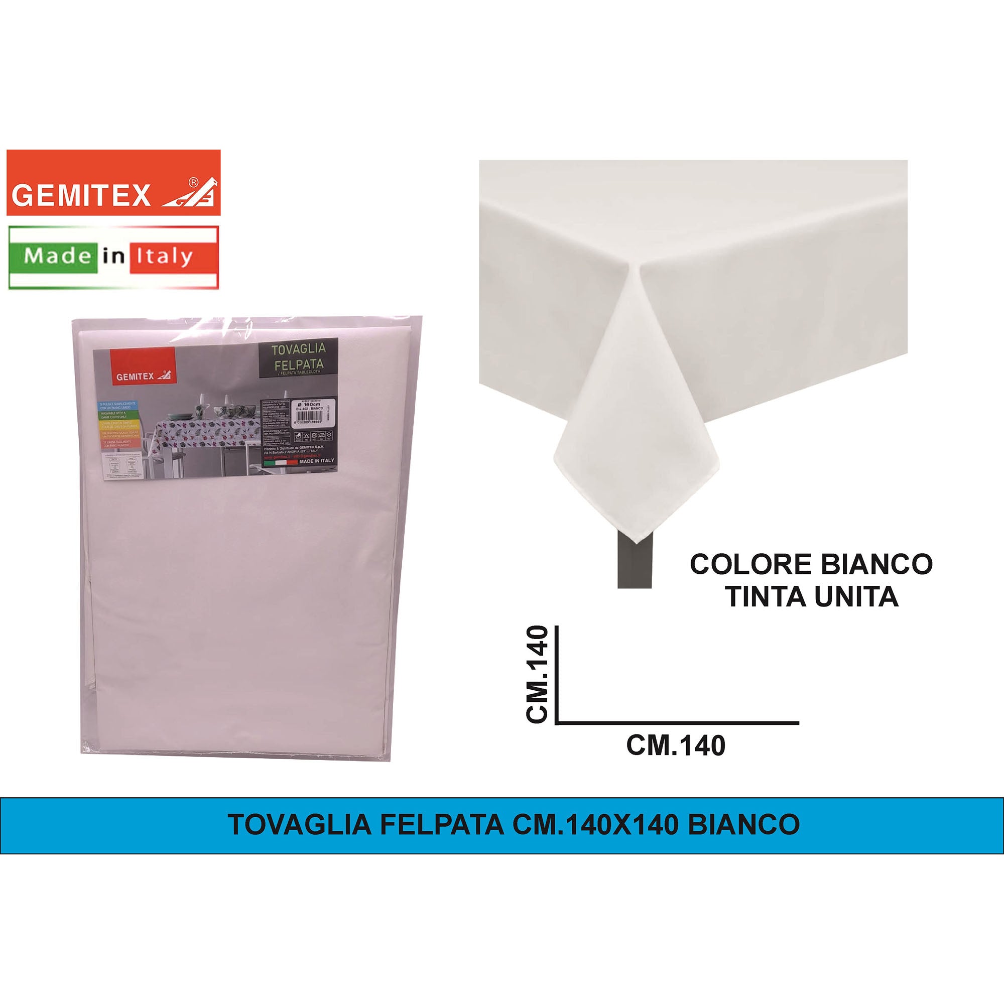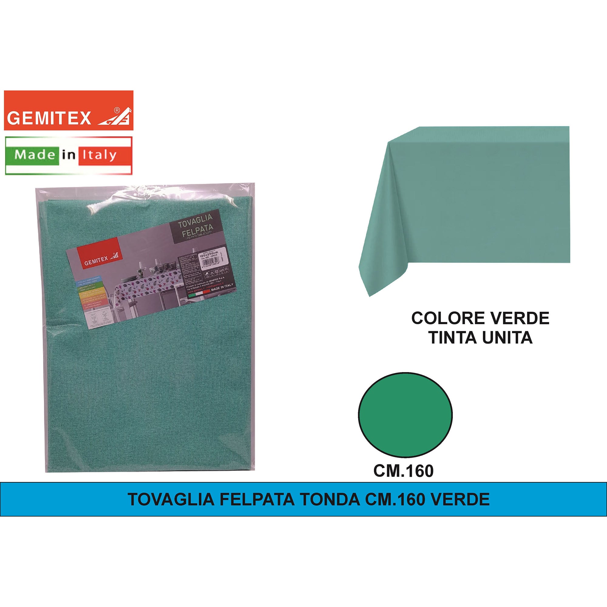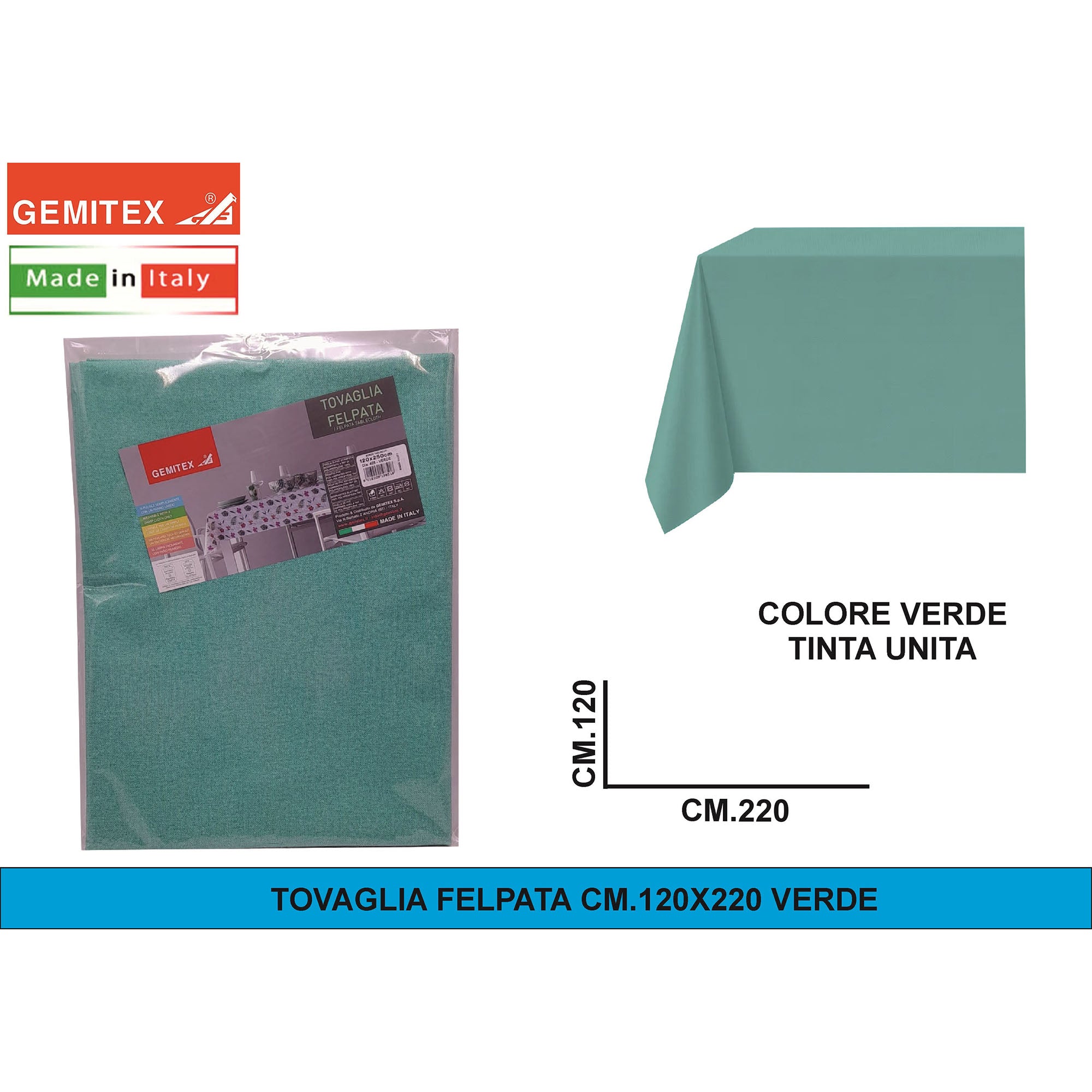 Gemitex Tovaglia Felpata, Made in Italy, Misure 120x190cm, 120x220cm, 120x250cm, 140x140cm e Ø160cm | Diversi Colori Disponibili