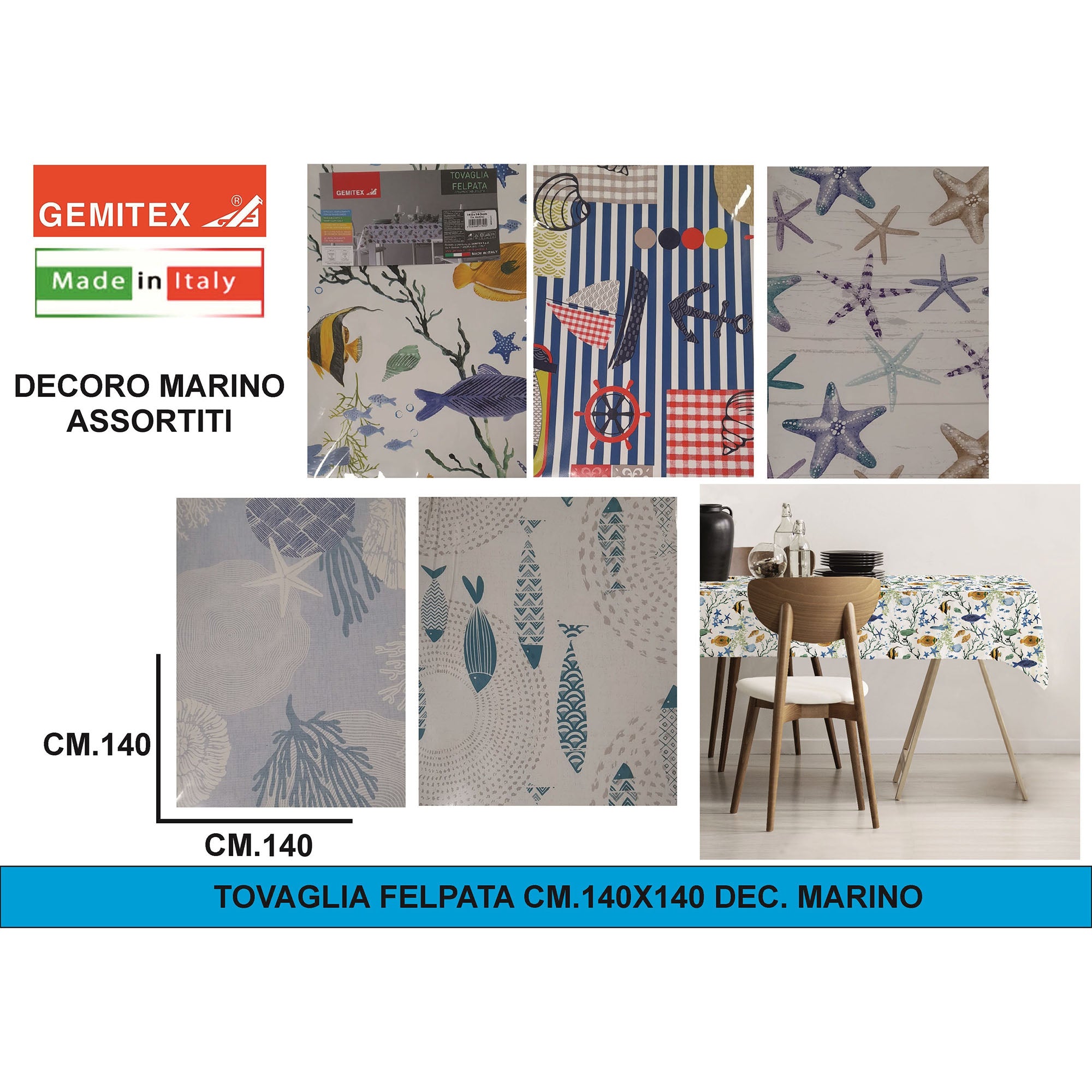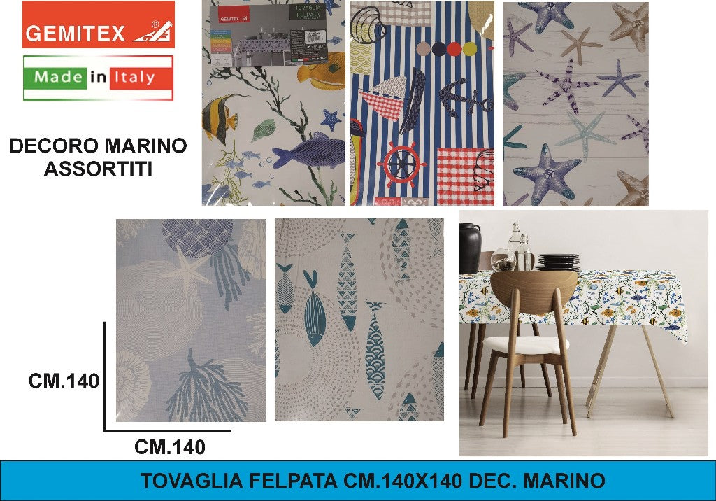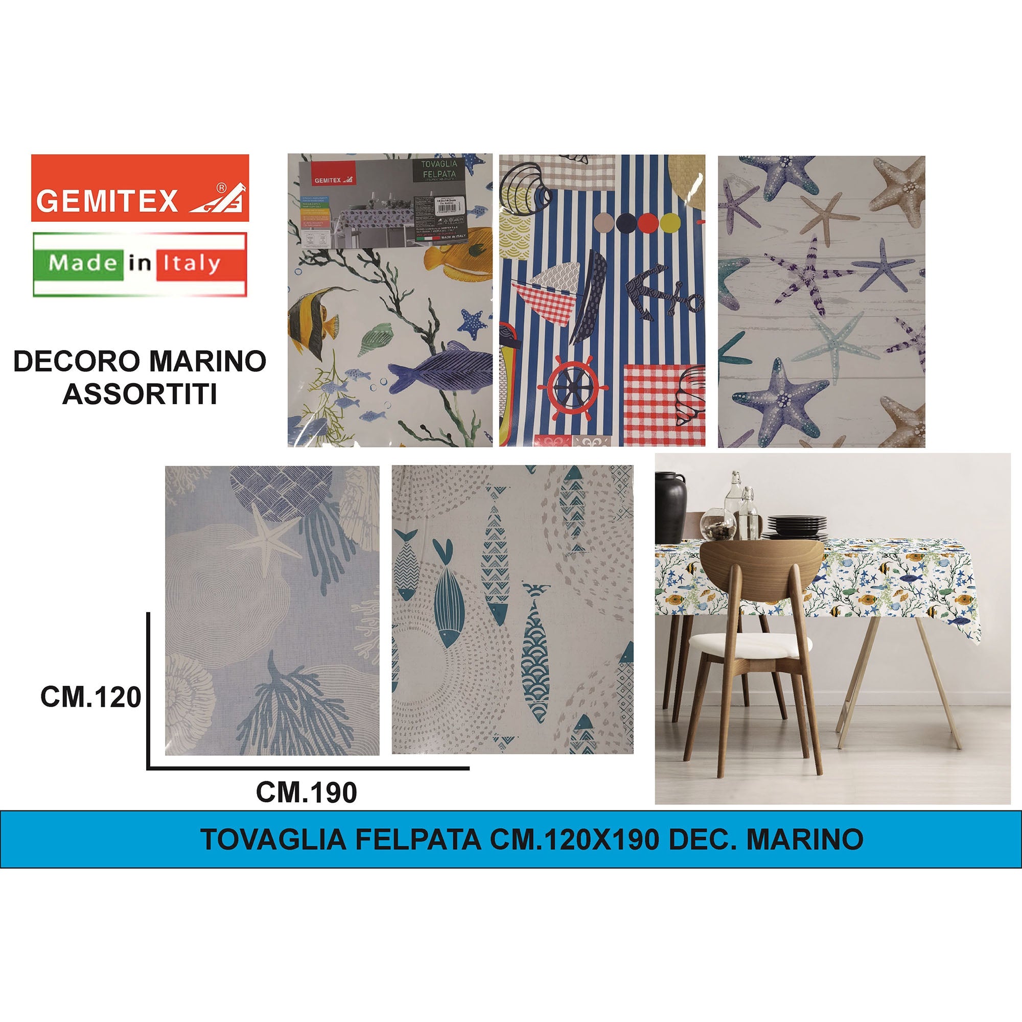 Gemitex Tovaglia Felpata, Decoro Marino Colori Assortiti, Made in Italy | Misure 120x160cm, 120x190cm, 120x220cm, 140x140cm, 120x250cm