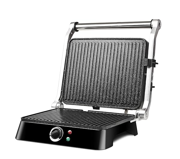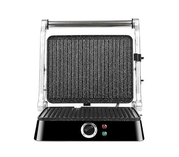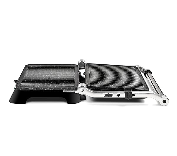 Girmi BS44 Bistecchiera elettrica effetto Petravera, Corpo Inox, Apertura a libro 180°, Cassetto raccolta liquidi, RegolaPiastre 29 X 23 cm
