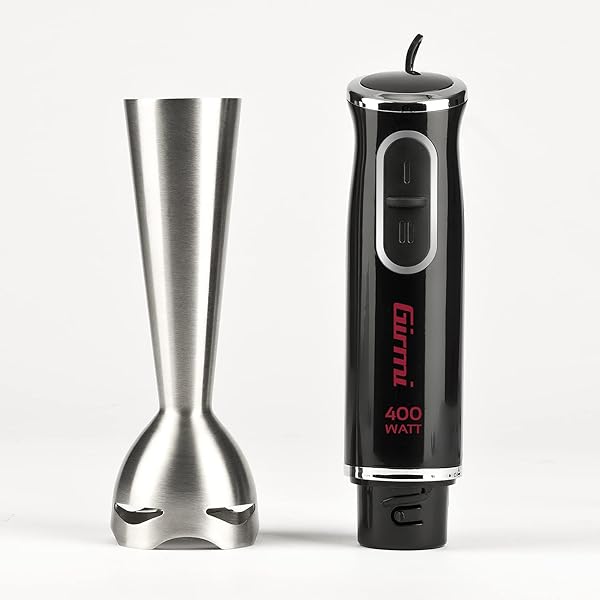 Girmi MX03 Mixer a Immersione, 400 W, Motore DC, Fusto lungo 19 cm e lame INOX, 2 Velocità, Impugnatura ergonomica, Nero/Acciaio