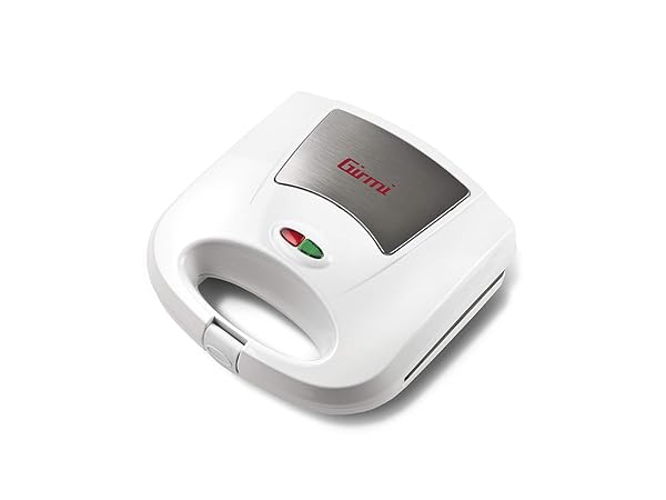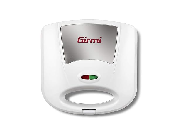 Girmi TS03 Tostiera, 750 W, Piastre antiaderenti, Manico termoresistente con chiusura, Spia di accensione e temperatura, Bianco