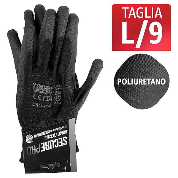 Guanti da Lavoro Taglia L/9 in Poliuretano per Meccanica Giardinaggio Fai da Te
