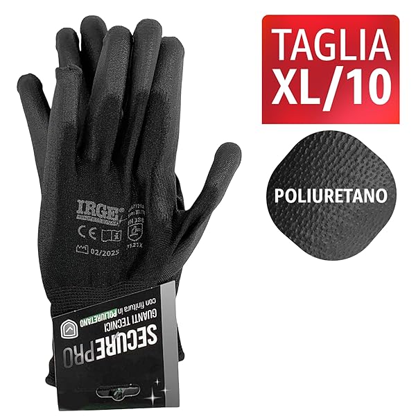 Guanti da Lavoro Taglia XL/10 in Poliuretano per Meccanica Giardinaggio Fai da Te