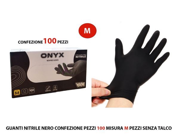 Guanti Nitrile Nero Conf. 100 Pz. Mis.M Senza Talco
