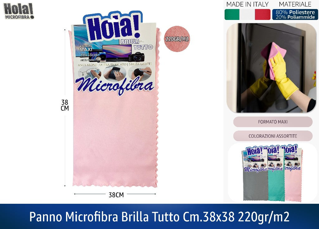 Hola! | Panno microfibra "Brilla Tutto" 38×38 cm — 220 gr/m² — Made in Italy