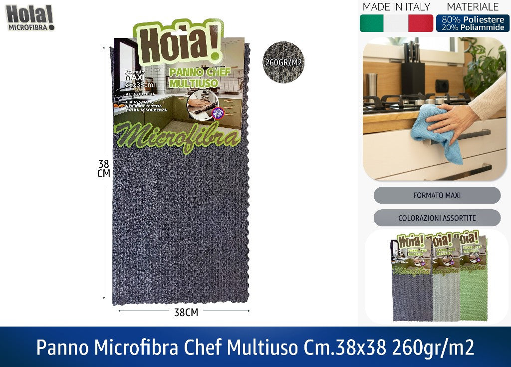 Hola! | Panno microfibra Chef multiuso 38×38 cm — 260 gr/m² — Made in Italy