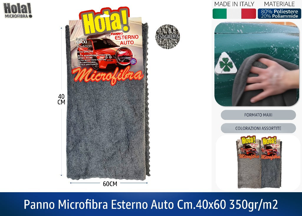 Hola! | Panno microfibra esterno auto 40×60 cm — 350 gr/m² — Made in Italy