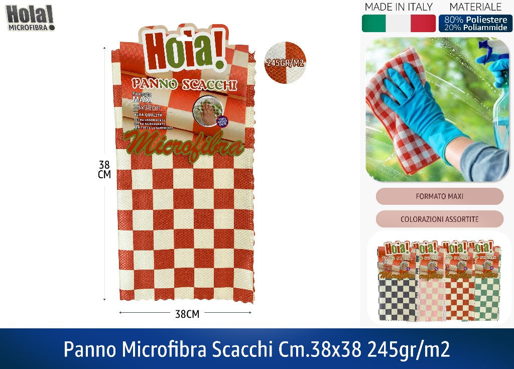 Hola! | Panno microfibra "Scacchi" 38×38 cm — 245 gr/m² — Made in Italy