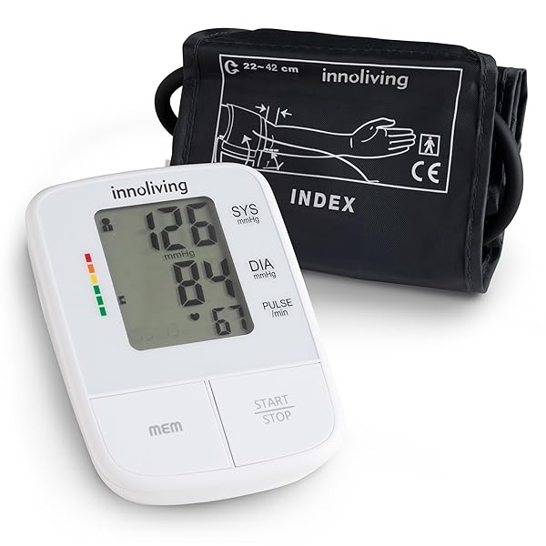Innoliving Misuratore di Pressione da Braccio Digitale e Automatico, Display LCD Grande, Facile da Usare, Rilevazione di Pressione Sanguigna e Battito Cardiaco, Memoria Integrata (INMD-DBP-6191)