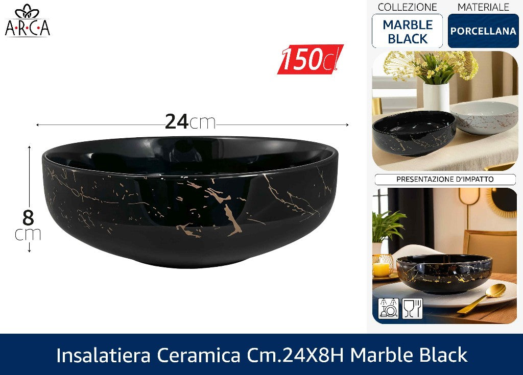 INSALATIERA CERAMICA CM.24X8h MARBLE BLACK