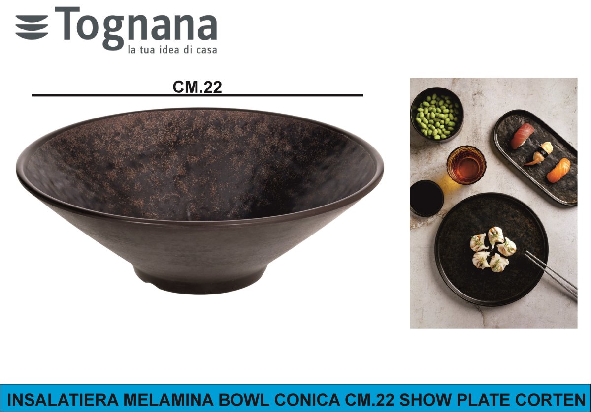 Tognana Insalatiera Melamina Bowl Conica Show Plate Corten - cm.22 e cm.25