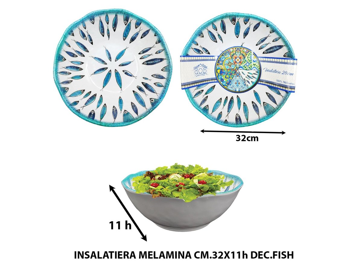 Arca Insalatiera Melamina Cm.32X11H Dec.Fish